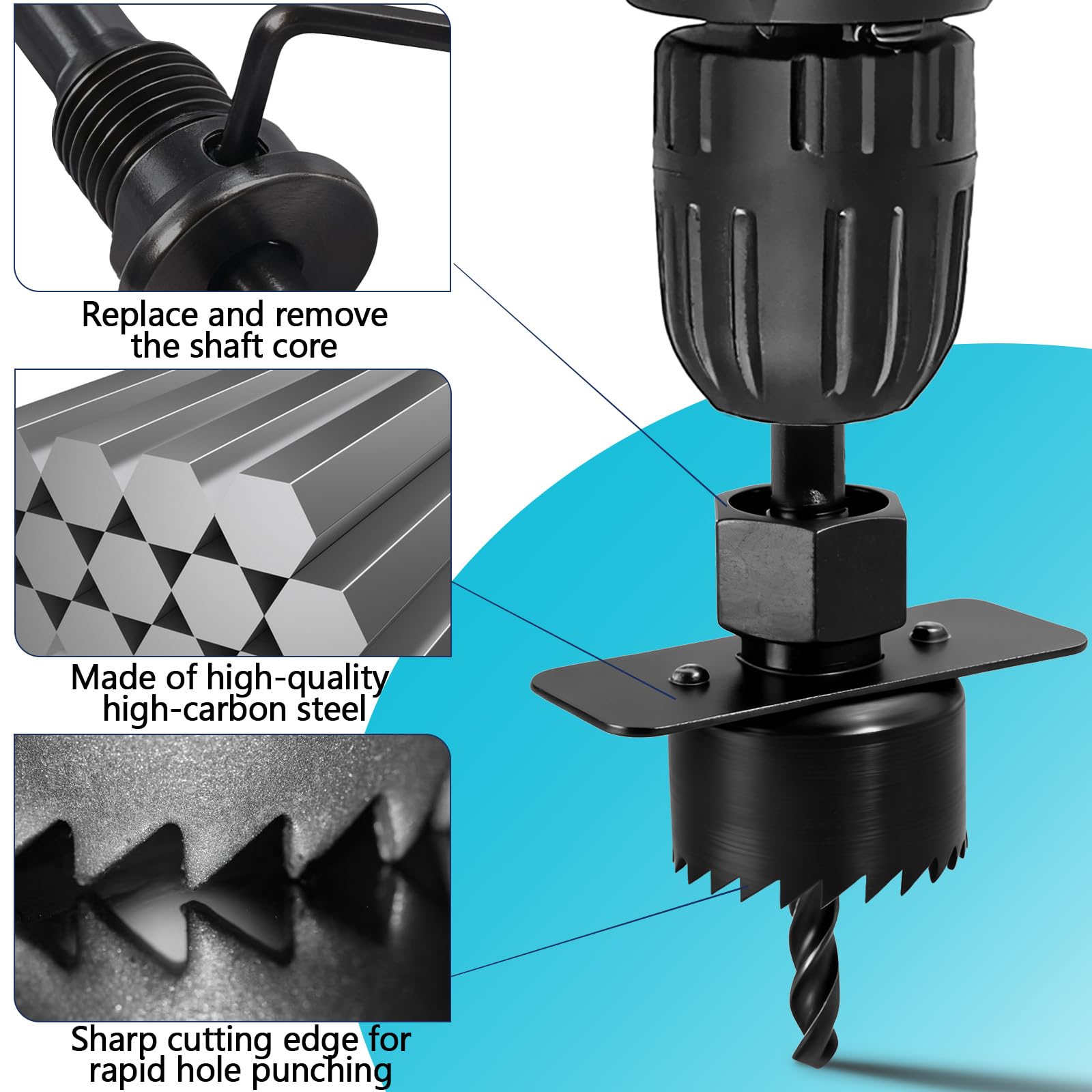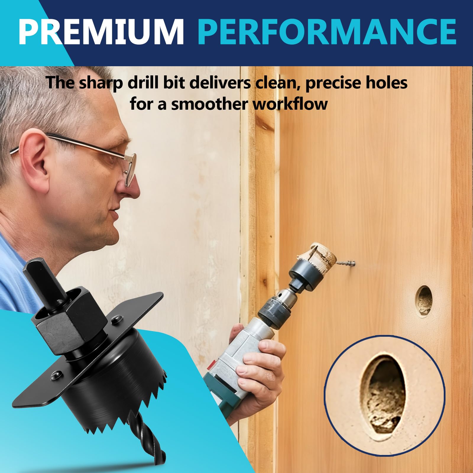 - 【All-in-One Professional Set】 Includes 8pcs saw blades (3/4" to 2-1/2"), 2pcs shaft cores, drill bits, hex wrench, mounting plate and storage box—supplying every tool needed for smooth and efficient hole cutting