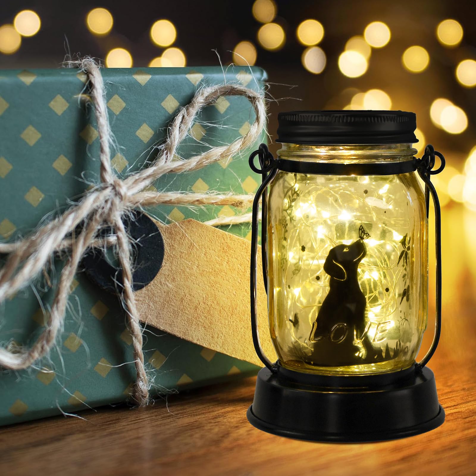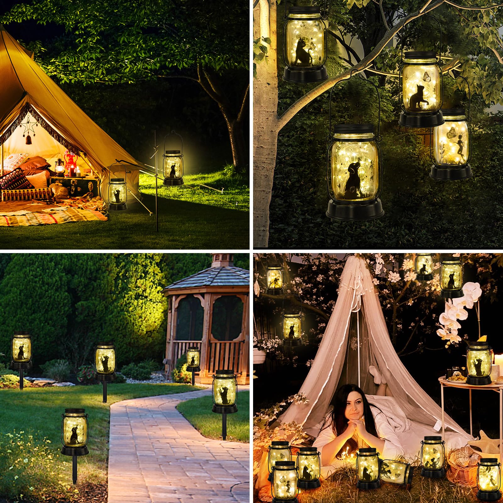- PERFECT GARDEN DECORATIONS: Add a purrfect touch to yr yard with our charming cat solar lantern. As a decorative accent, it warms up your patio, casting a cozy glow that makes your home feel extra inviting. The dog and butterfly design glows beautifully at night, weaving a romantic ambiance. Tip: The images inside the lantern can be rotated and adjusted, allowing you to DIY the lantern's display. Additionally, the string lights inside can be shaped freely to achieve different lighting effects