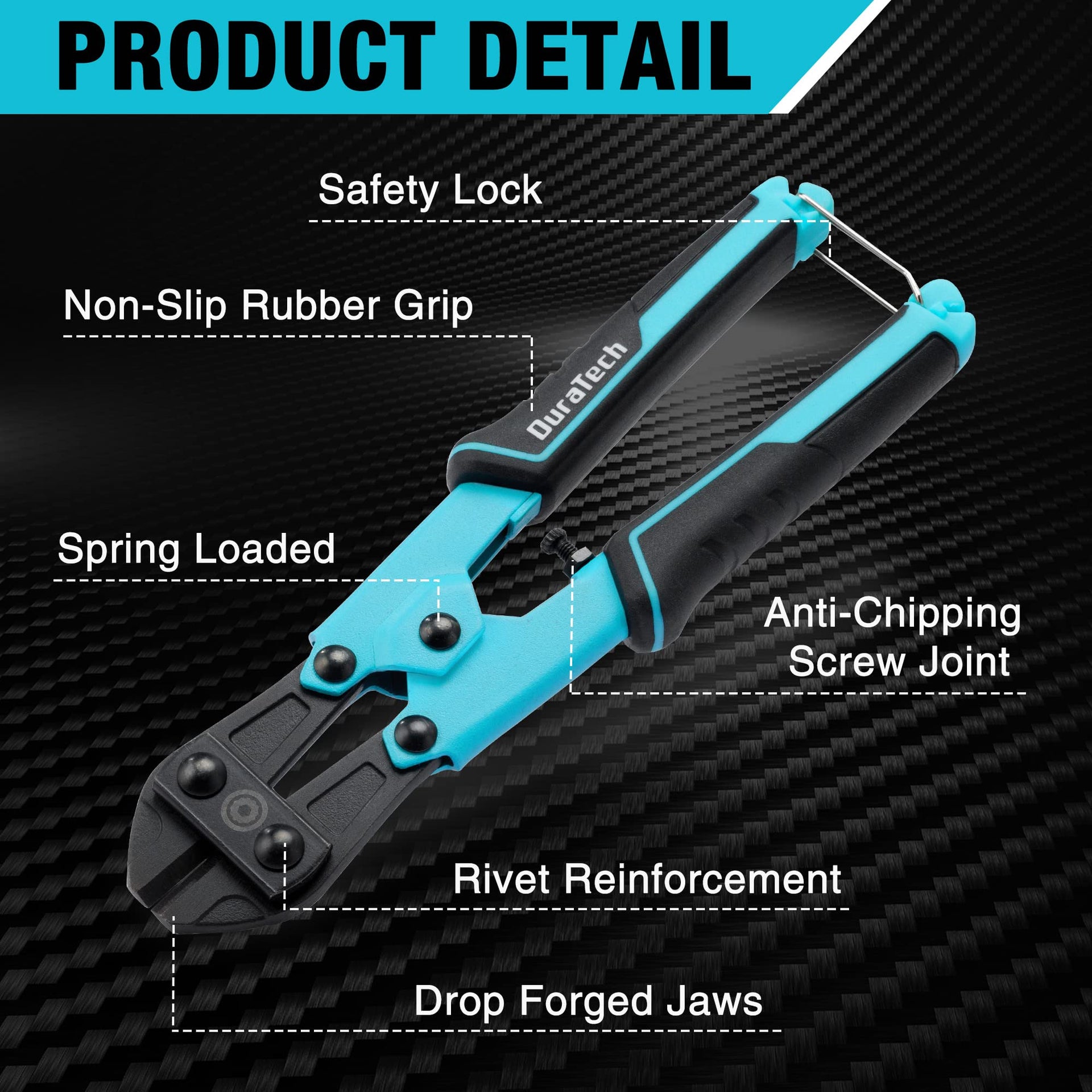 DURATECH 8" Mini Bolt Cutter with Ergonomic Bi-Material Handle, Chrome Vanadium Steel Blade, Security Lock for Wires, Cables & Chains