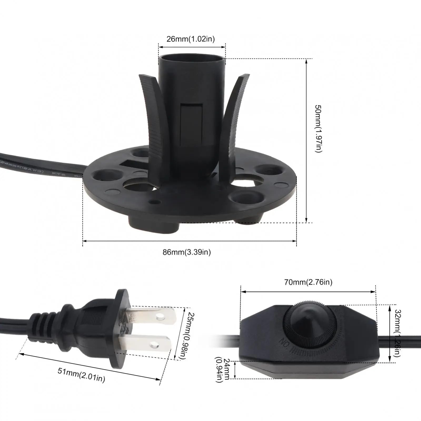 - Dimmer Switch & Cord Length: A dimmer control on a 6 ft cord for you to adjust the brightness you need. Cord Length: 56Inches/145 cm.Comes with 8 FREE 8W bulbs and One Butterfly clip. Standard E12 socket. It will fit right in any location, from your bedside table, home office and everywhere in between.