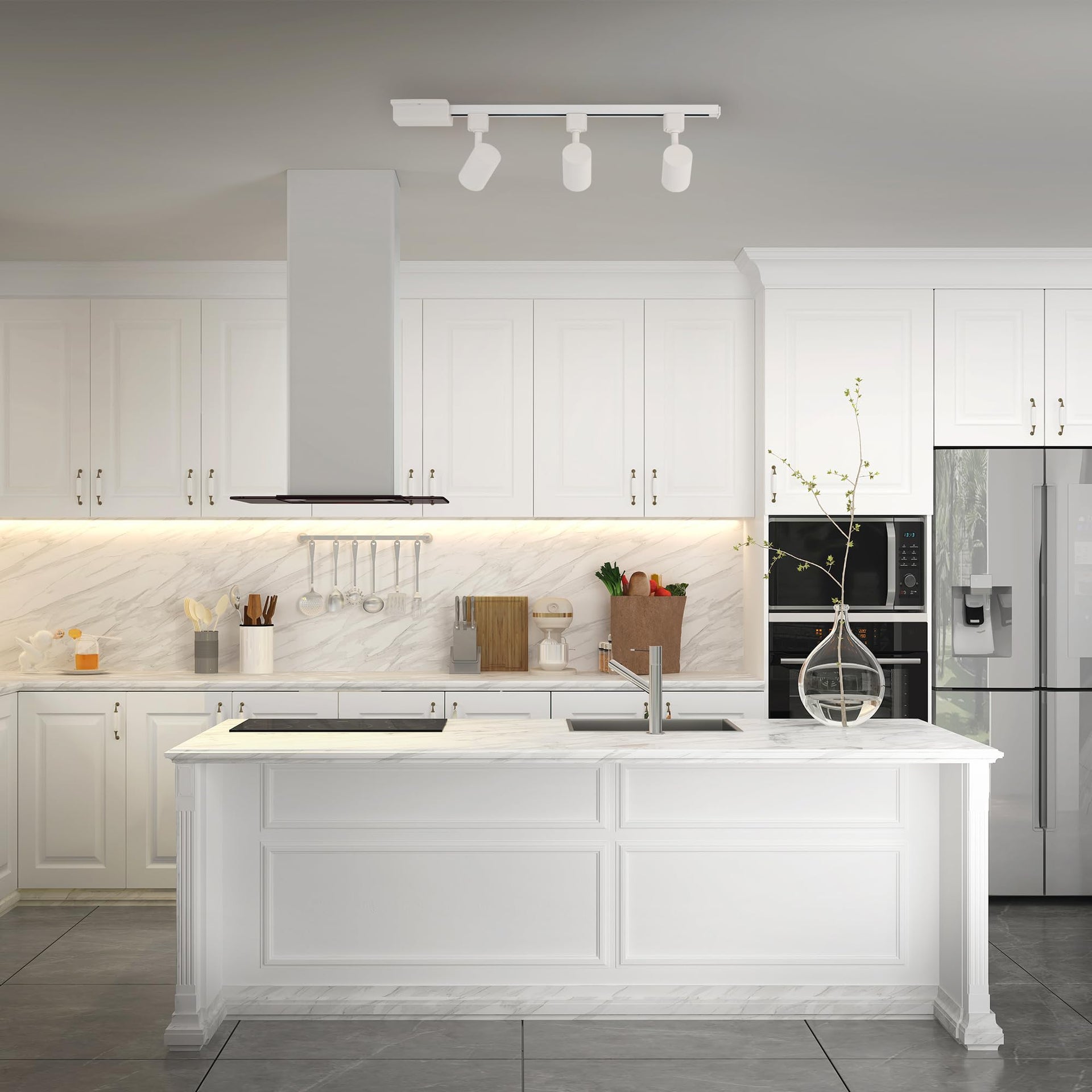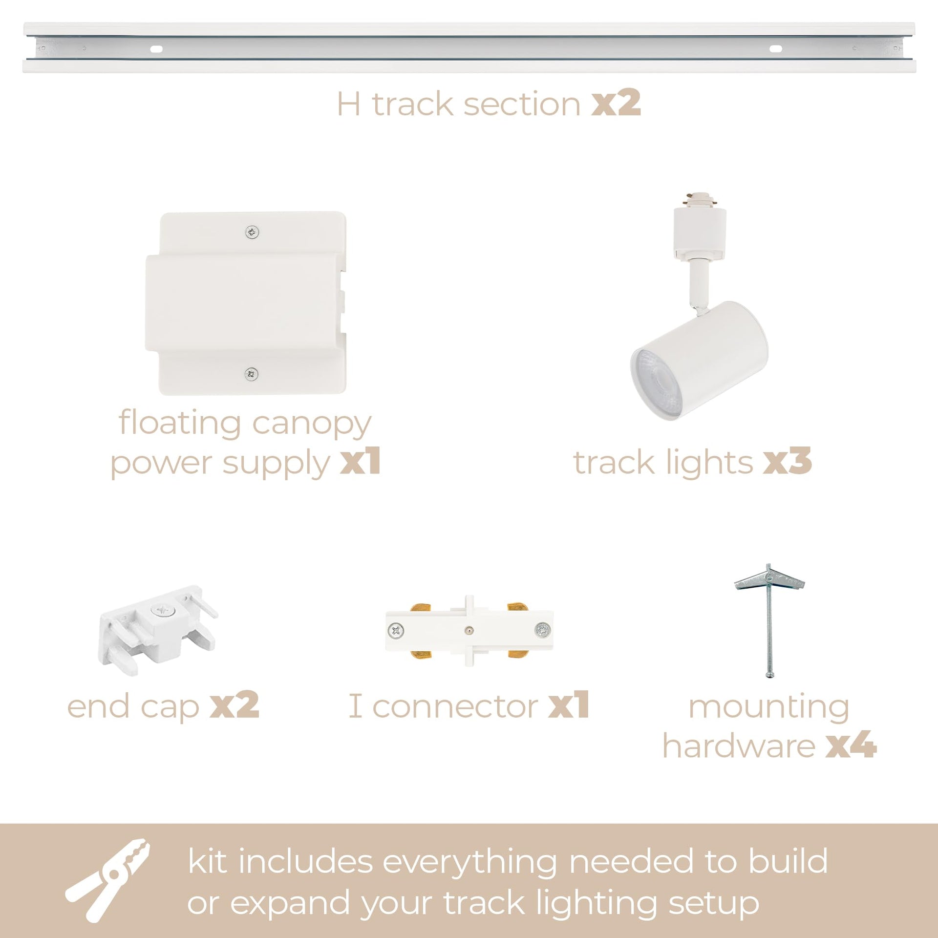 East Grove Amped 3-Light 48in LED Track Lighting Kit, 3000K Warm White, Field Cuttable, 4ft Track with Heads & End Caps, White