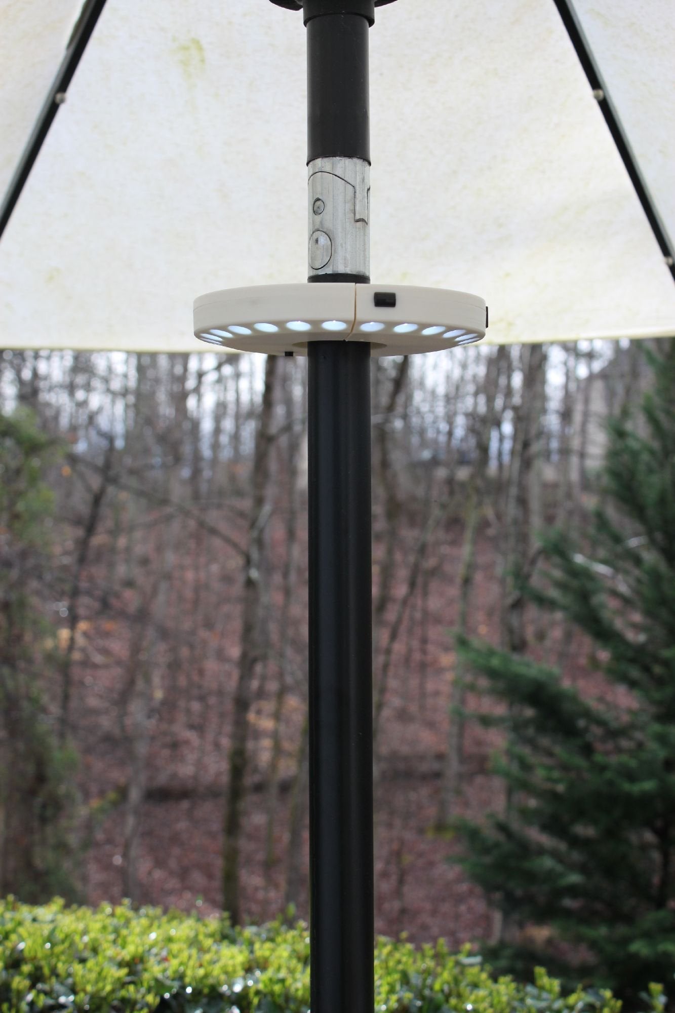 - 24 White LED lights will light up your outdoor space for nighttime gatherings and dining, 2 Umbrella Lights, clamp easily to the umbrella pole.