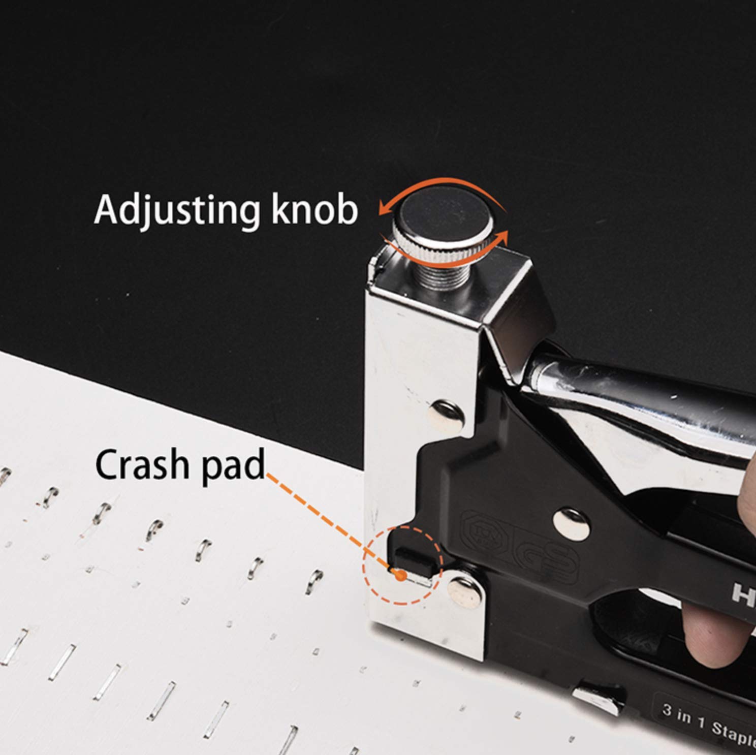 - 3 in 1 Staple Gun for stapling D Staples, U Staples and T Staples Quick clear