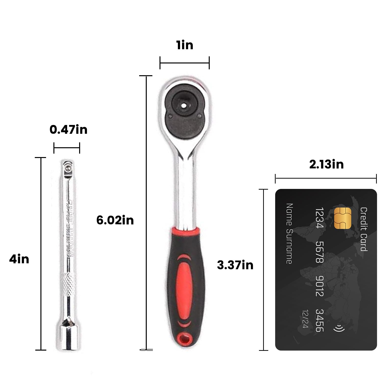- 1/4" PROFESSIONAL RATCHET HANDLE - Ergonomic easy-grip ratcheting handle could be quickly released, make you comfortably reverse the switch and let the product exceptional durability.