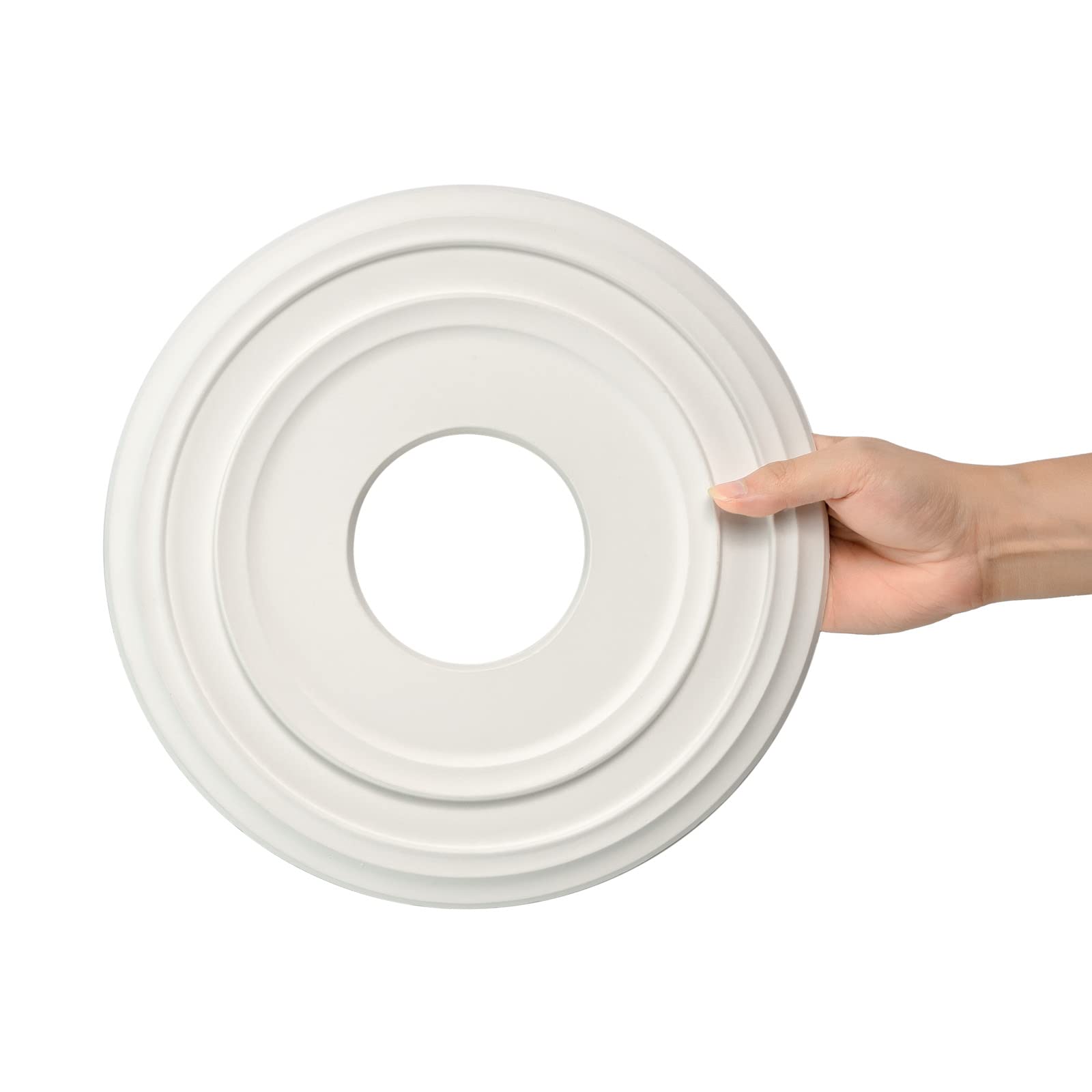 - Size: 12-2/8"OD x 4"ID x 1"P, White (Fits Canopies up to 7"); Material: PU; Color: White. Fits Canopies up to 7" suitable for pendant, chandelier, ceiling fan. And it can be used to cover the fixture around large holes and cracks. Note: The ceiling medallion of 12.25 inchs is most suitable for lamps at 42" or smaller. Such as mini Pendant, Semi-flush mount lights, Ceiling fan or Chandeliers with in 42". Installation in this proportion is the most coordinated.
