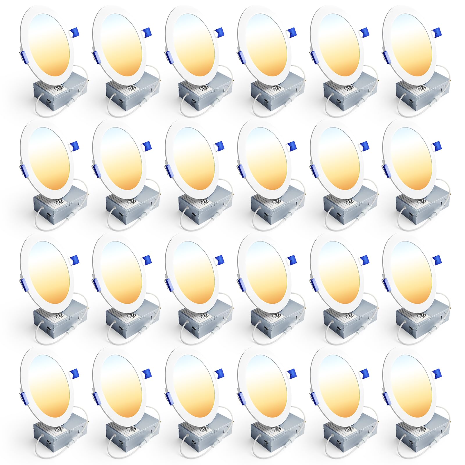 - 5CCT in ONE: Choose from 2700K, 3000K, 3500K, 4000K, 5000K with a simple click on the side of the J-box, Ensenior's canless recessed light 6 inch provides perfect lighting for your bedroom, living room, kitchen, bathroom, home office and other rooms.