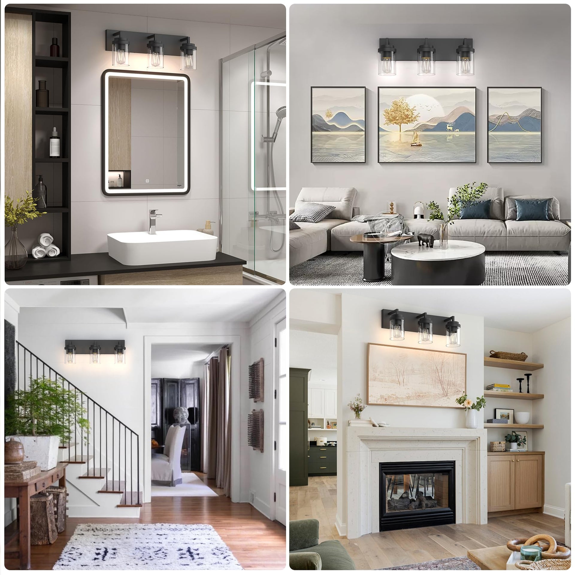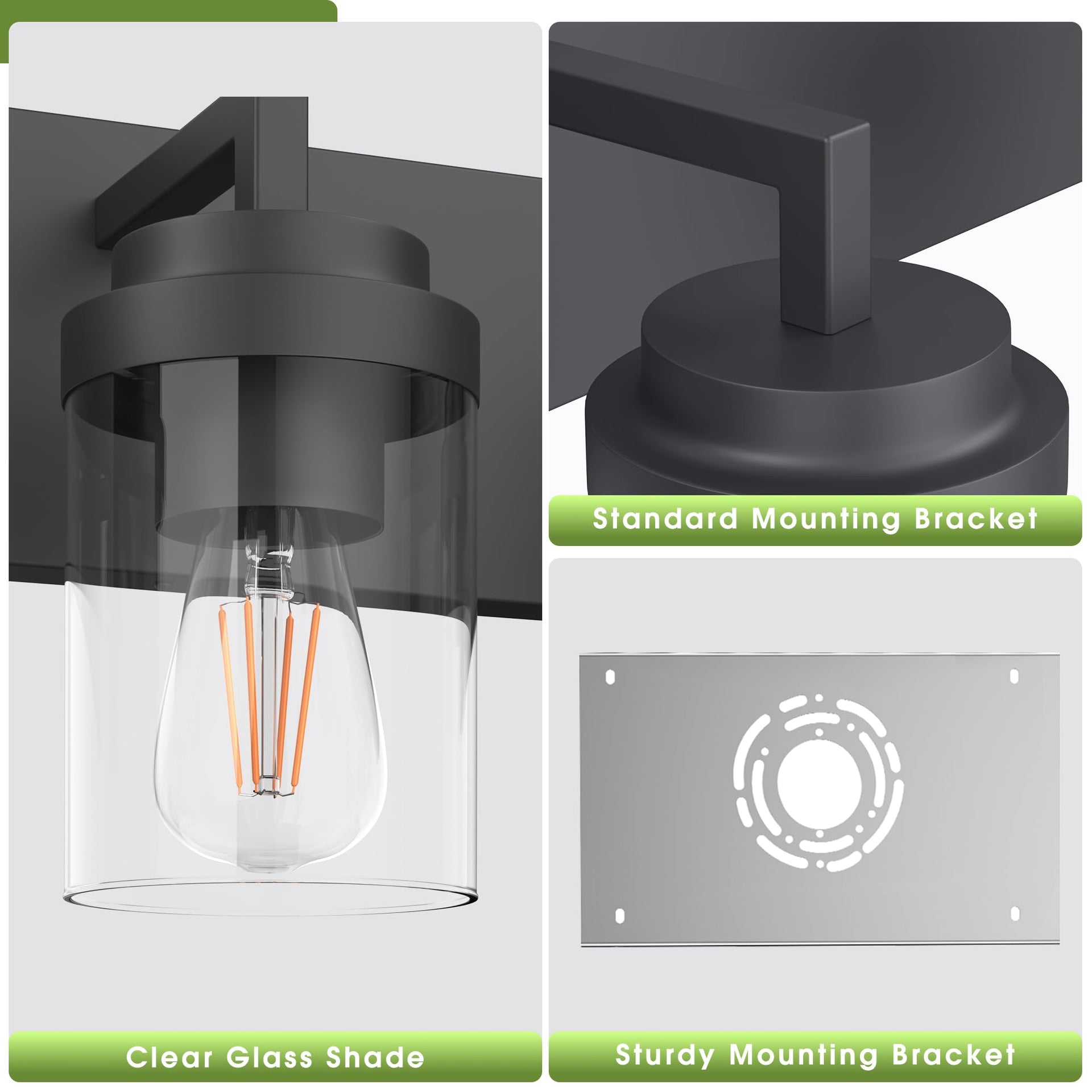 Espird 3-Light Bathroom Vanity Light, 22" Matte Black Wall Sconce with Clear Glass Shade, Modern Lighting for Mirror & Living Room