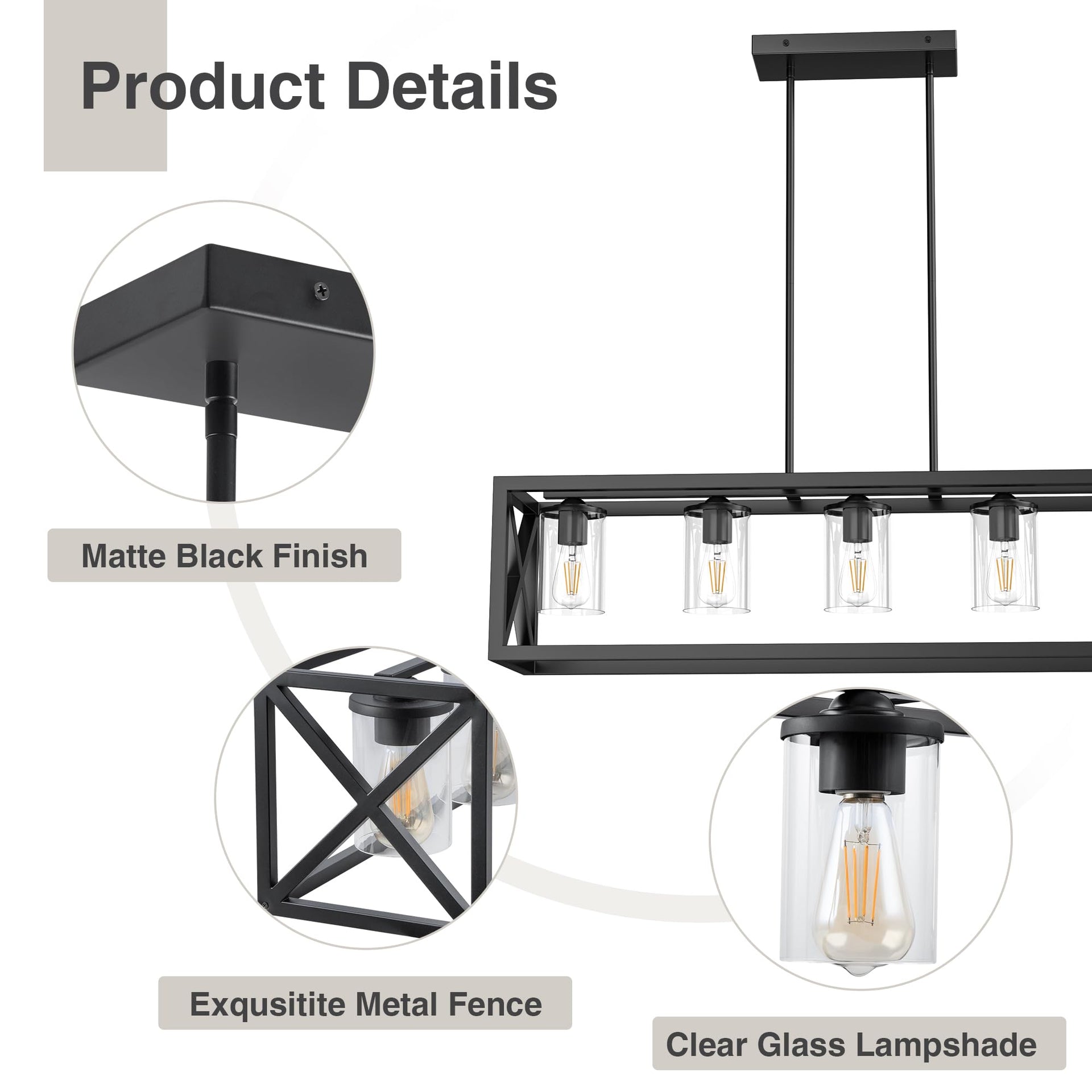- MODERN FARMHOUSE: Matte black dining room light is suitable for modern farmhouse style, you can decorate with rectangle chandelier. You can send your friend dining room light fixtures over table if he need to decoration house. In addition, the height adjustable dining room chandelier is suitable for any style of house, no matter which room you want to put the dining room lighting fixtures ceiling in it will be incredibly suitable. Our dining table light fixture can be a great bright decoration.
