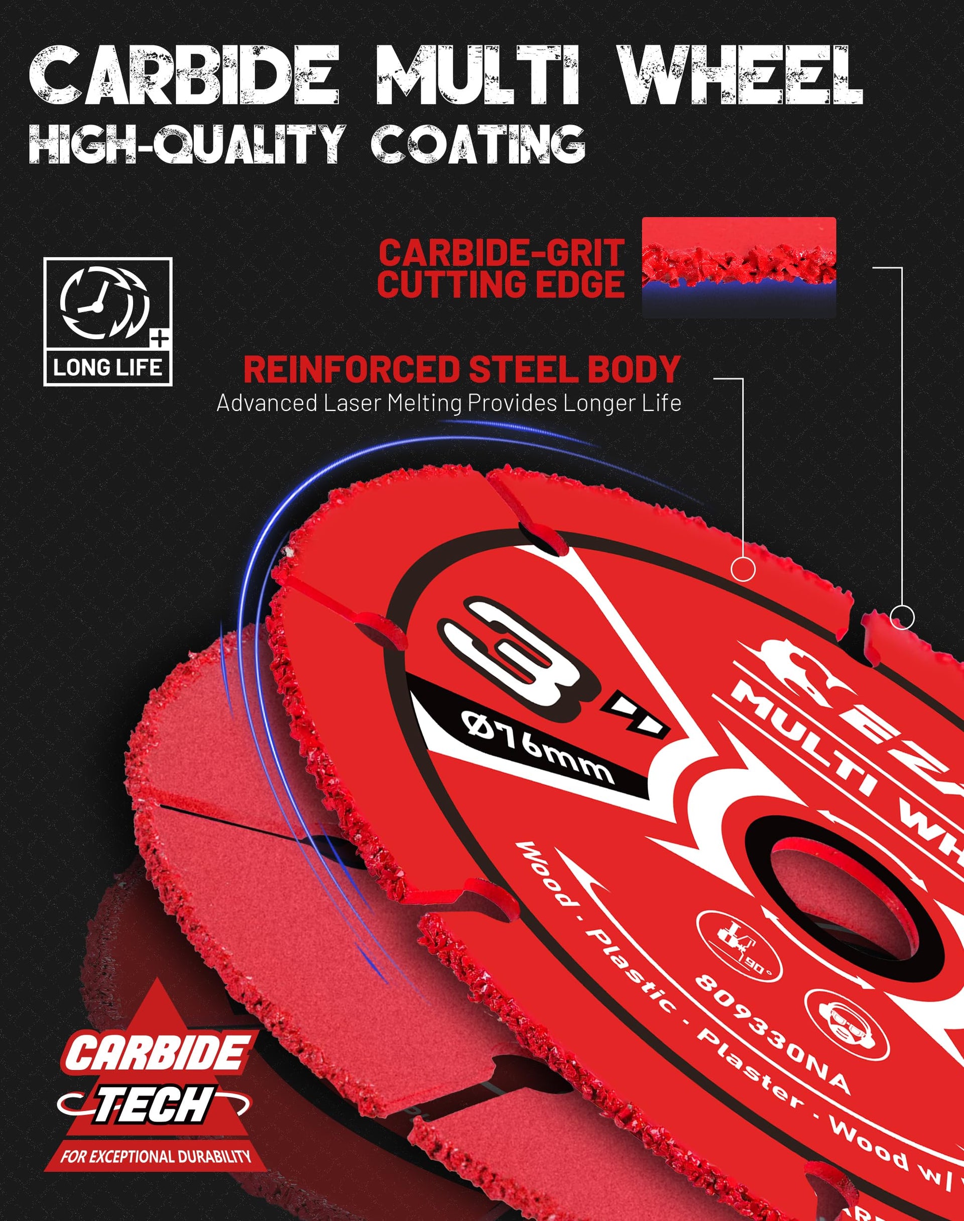 - 【Carbide Technology】EZARC Carbide multi wheel is brazed with evenly distributed high-quality carbide particles, offering exceptional wear resistance and long-lasting performance. Up to 2X cutting efficiency vs inferior alloy saw blades.