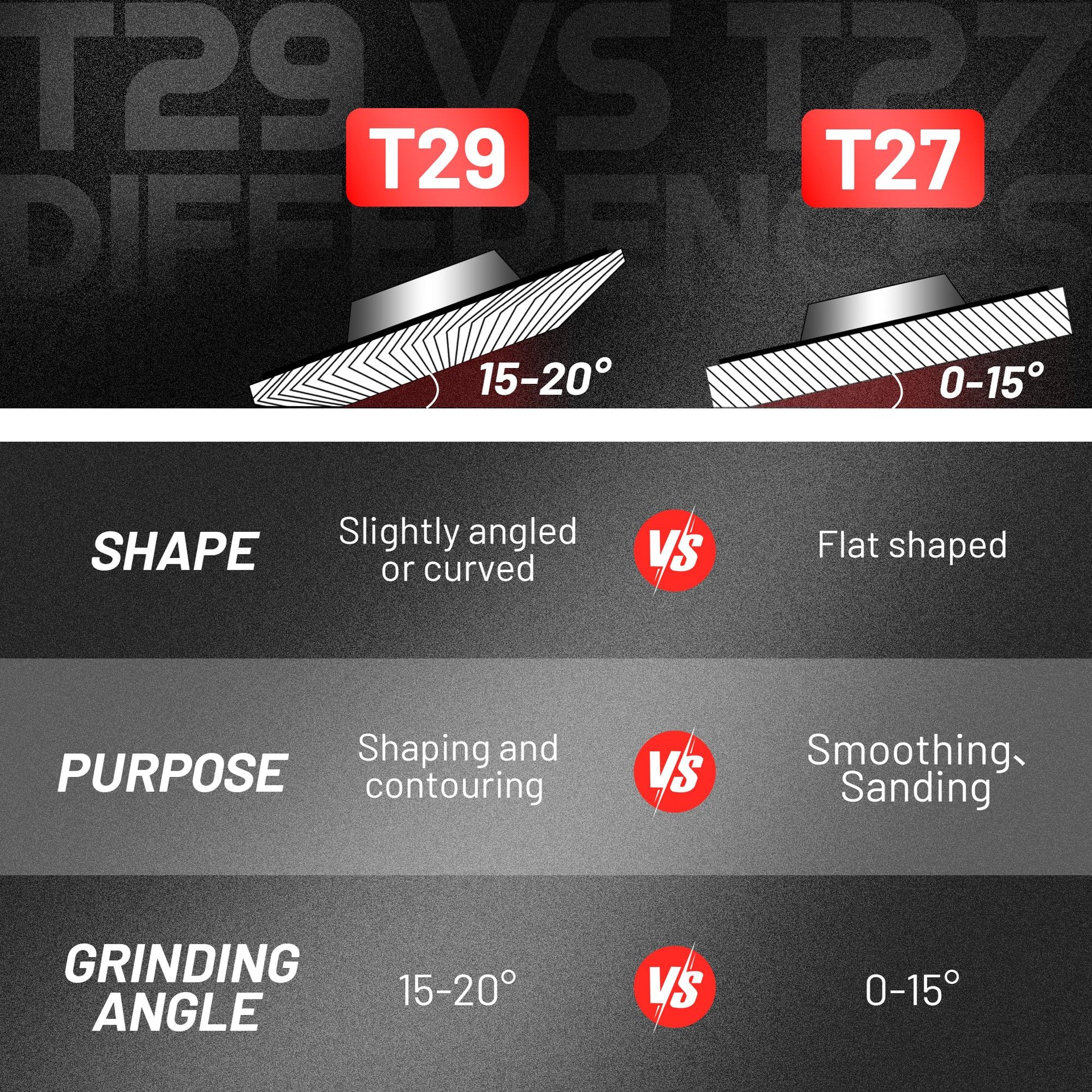 - 【Type 29 Backing】Designed with Type 29 backing helps with contouring edges. It’s perfect for a range of tasks, including rust removal, polishing, finishing, and weld bead cleanup. The fiberglass backing of the flapper disc features a robust resin-fiber structure that absorbs vibrations and enhances impact resistance.