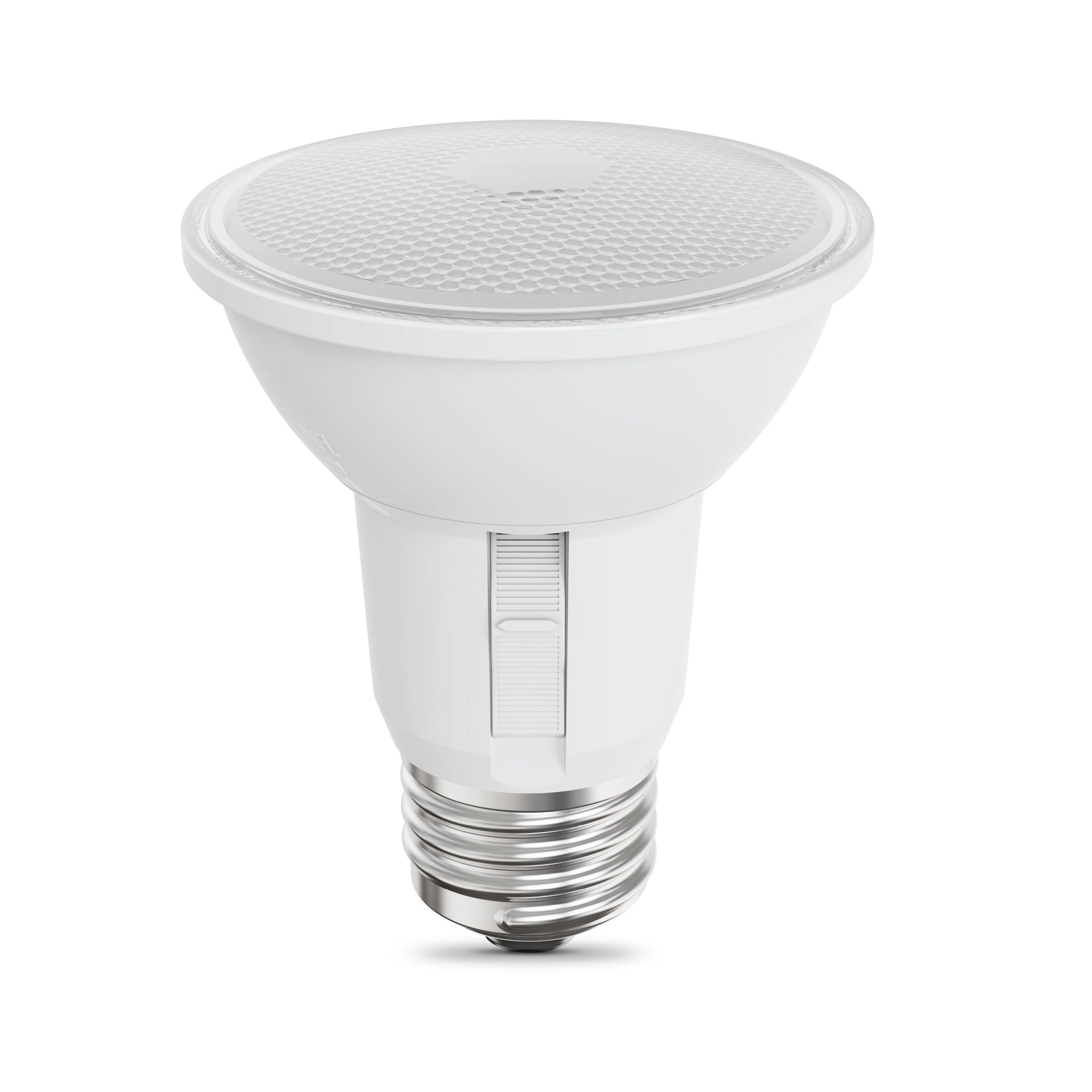 Details: Feit Electric Adjustable White Beam Choice PAR20 LED reflector lights feature an innovative adjustable design so you can get wide or more focused light with just one bulb. With a simple twist, the light can be adjusted to 30°, 60° or 100° for different ceiling heights or lighting preferences. Adjustable White light lets you preset your preferred color temperature on the bulb or switch anytime from a wall switch. Match your current lighting or get the perfect light in every room for every mood. Enhance 90+ CRI rating makes colors vibrant and skin tones look more natural, all while saving energy and lasting for a decade or more. This high-performance bulb is fully dimmable with LED-compatible dimmers and is damp rated for indoor and covered outdoor use.