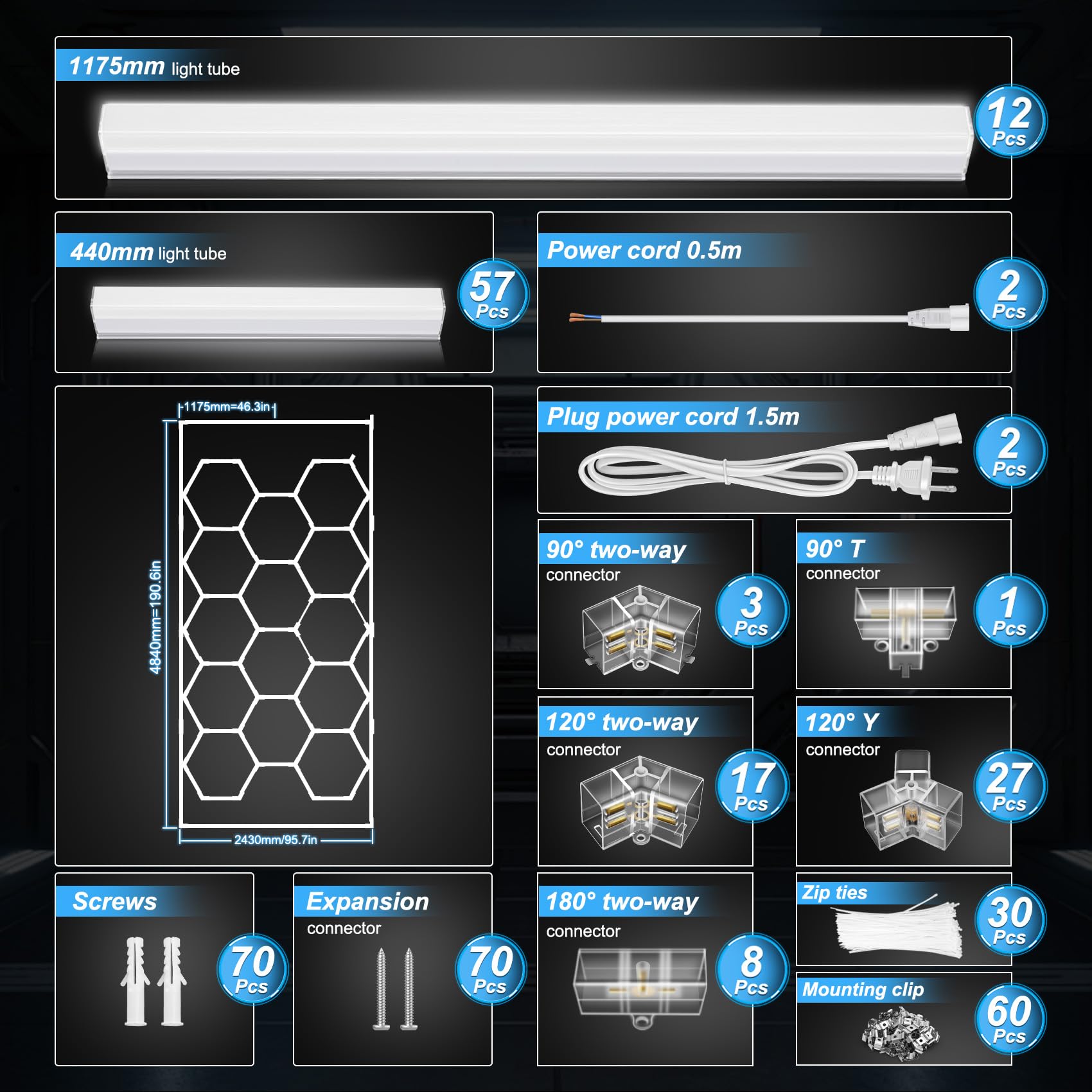 - High-Quality Illumination: The hexagon garage light provides exceptional lighting for your garage space. With its advanced LED technology, it delivers bright and uniform illumination, ensuring every corner of your garage is well-lit. Say goodbye to dimly lit areas and enjoy a well-lit workspace.