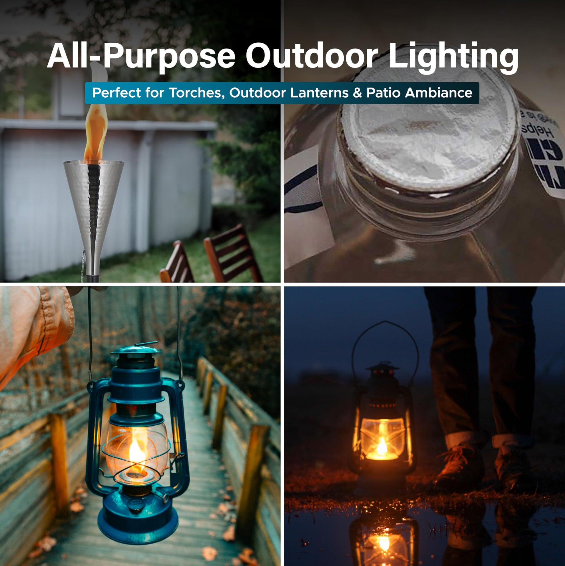 - OPTIMIZED FOR TIKI TORCH & LAMP PERFORMANCE – Specially formulated paraffin oil designed to work flawlessly with tiki torches, outdoor lanterns, and oil lamps, producing a bright, steady flame that resists flickering and enhances backyard gatherings.