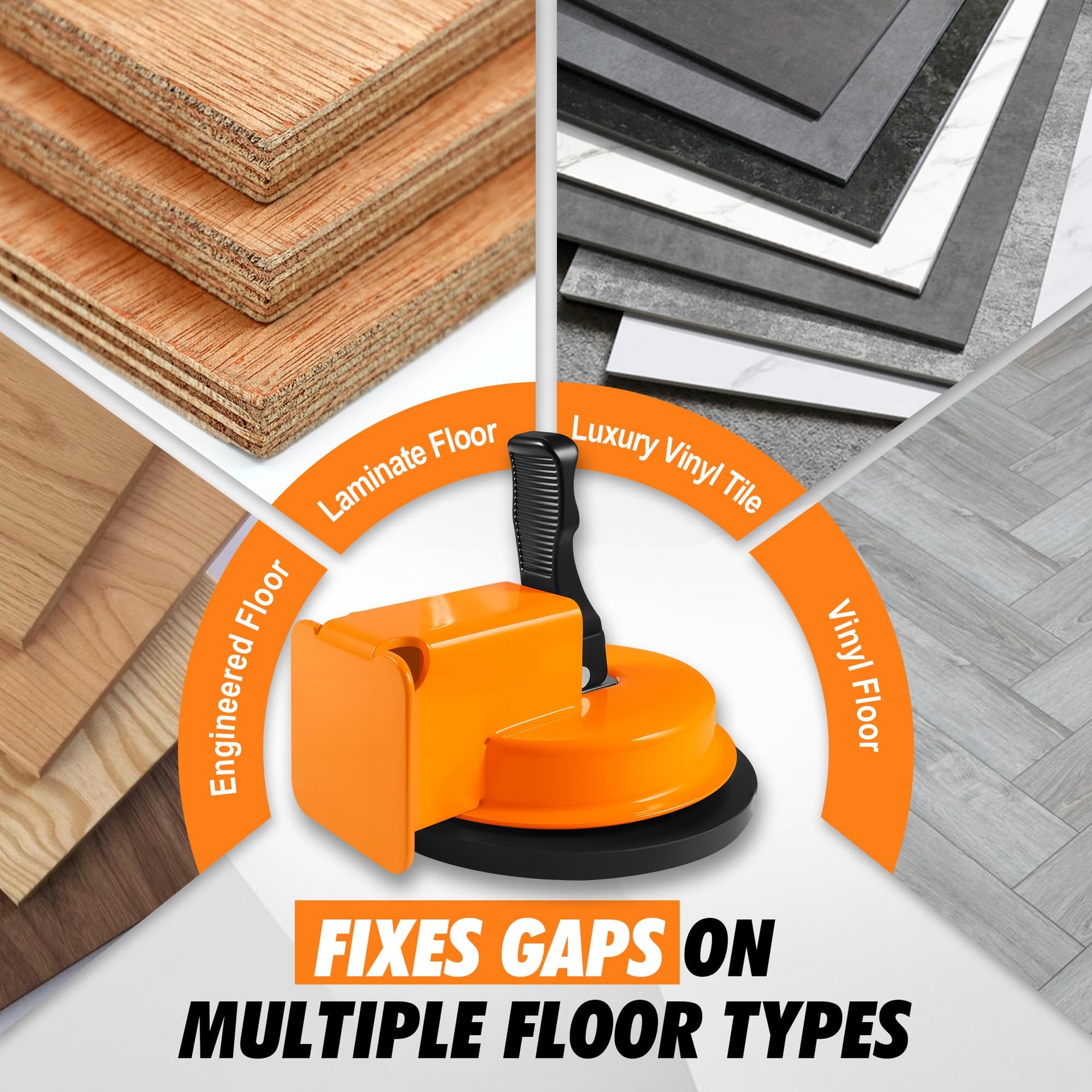- Heavy Duty Floor Gap Fixer Tool Set - Tired of visible floor gaps ruining your room’s look? The KEYMARX Floor Gap Fixer provides a simple and effective solution. Just press the suction switch to lock it onto the floor, then tap gently with the included rubber mallet to close the gap. Ideal for laminate, vinyl, wood, and other flooring types—perfect for both new installations and maintenance of existing floors.
