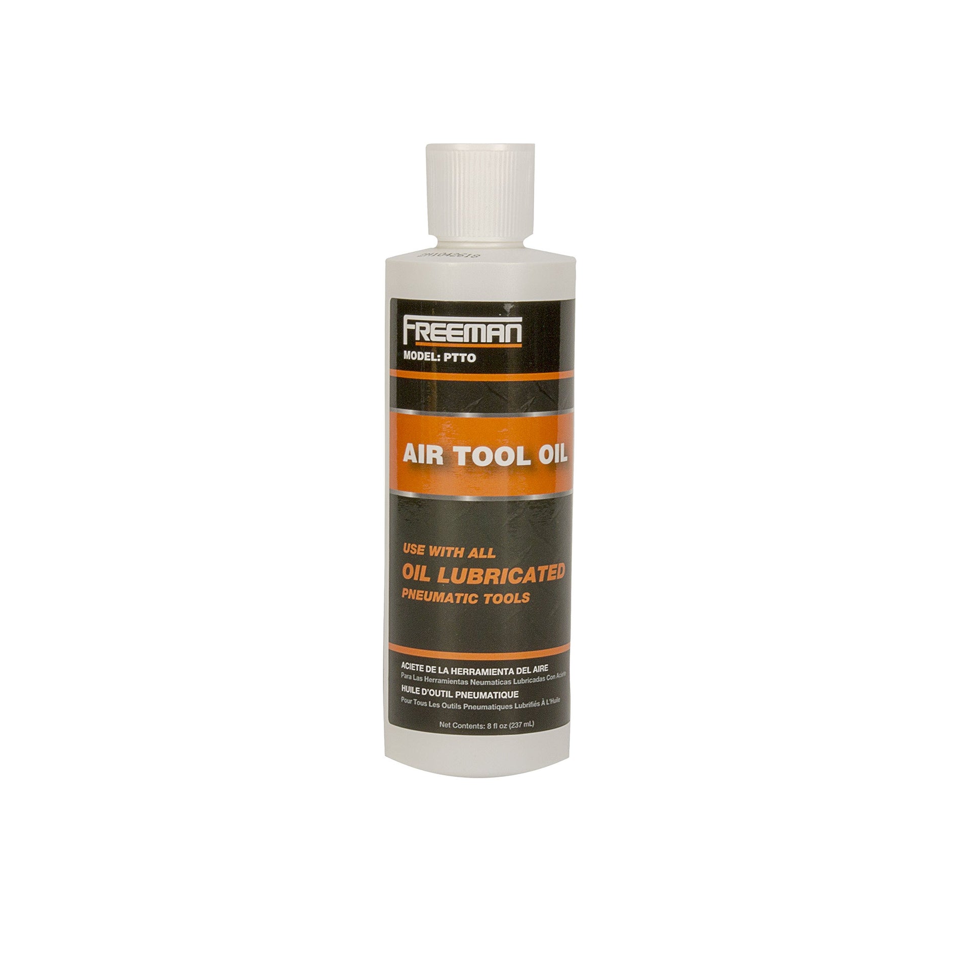 Details: The Freeman PTTO 8 oz. Air Tool Oil is specifically designed for the lubrication of pneumatic tools. Anti-gumming, anti-foaming, and rust Inhibitor solvent additives in the oil act as cleaners for the internal components of air compressor tools. Use this non-synthetic oil daily by applying several drops directly into the air inlet or in-line lubricator to break down sludge and debris deposits that build up with normal use. This lubricant is an essential accessory for DIYers as well as professional construction contractors. The tools used at job sites are a significant investment worth protecting and keeping at maximum performance levels. Using this oil will ensure your pneumatic tools run smoother and last longer, saving you money and allowing you to get more done at the job site in less time.
