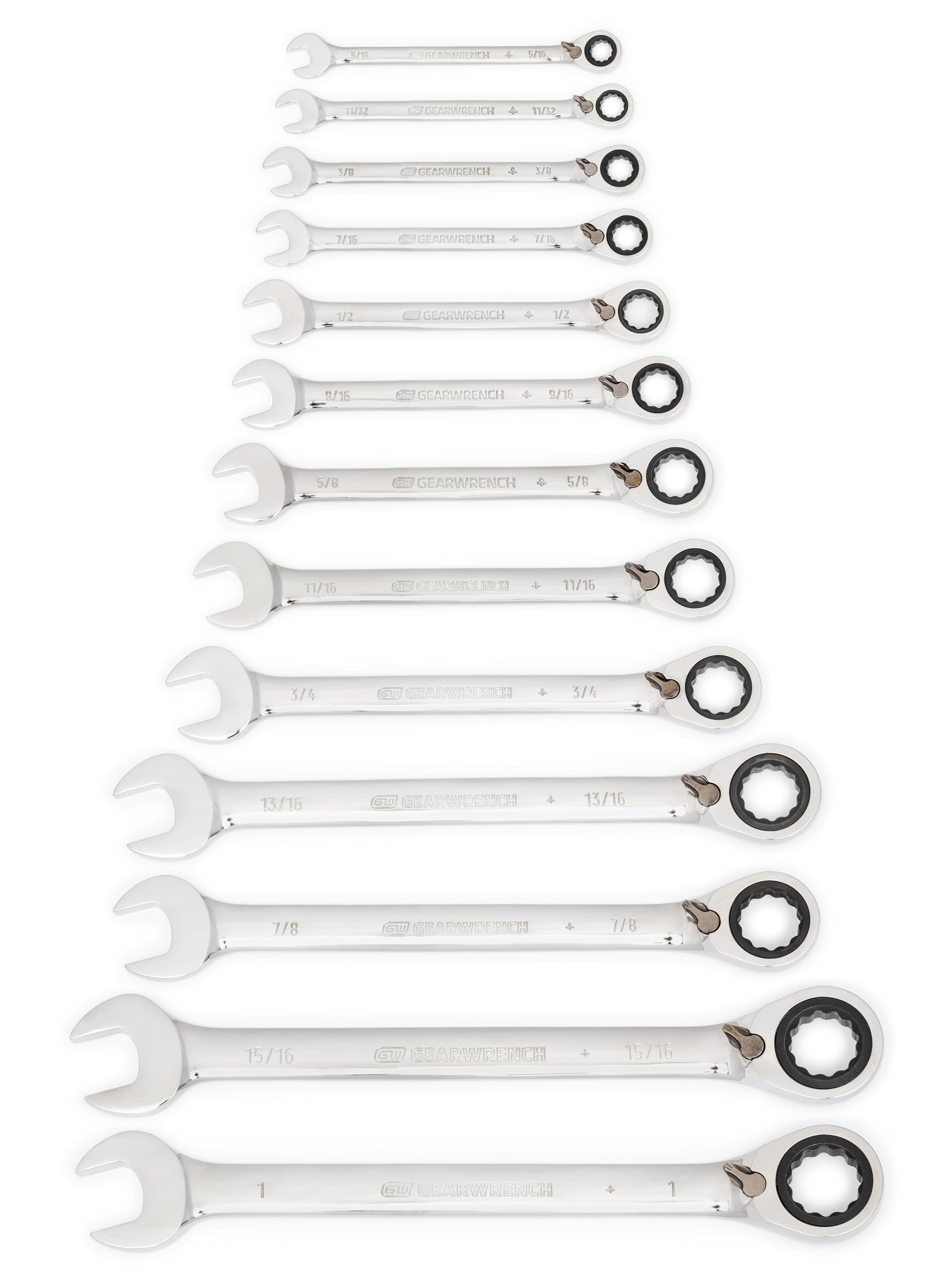GEARWRENCH 13 Pc. 12 Pt. Reversible Ratcheting Combination Wrench Set, SAE - 9509N