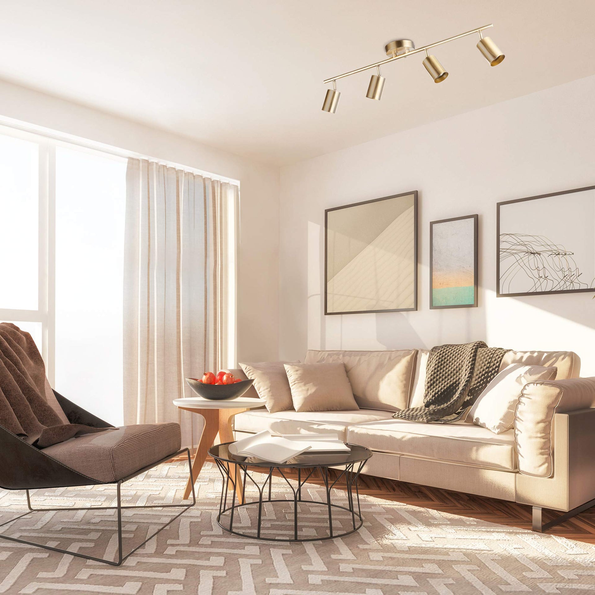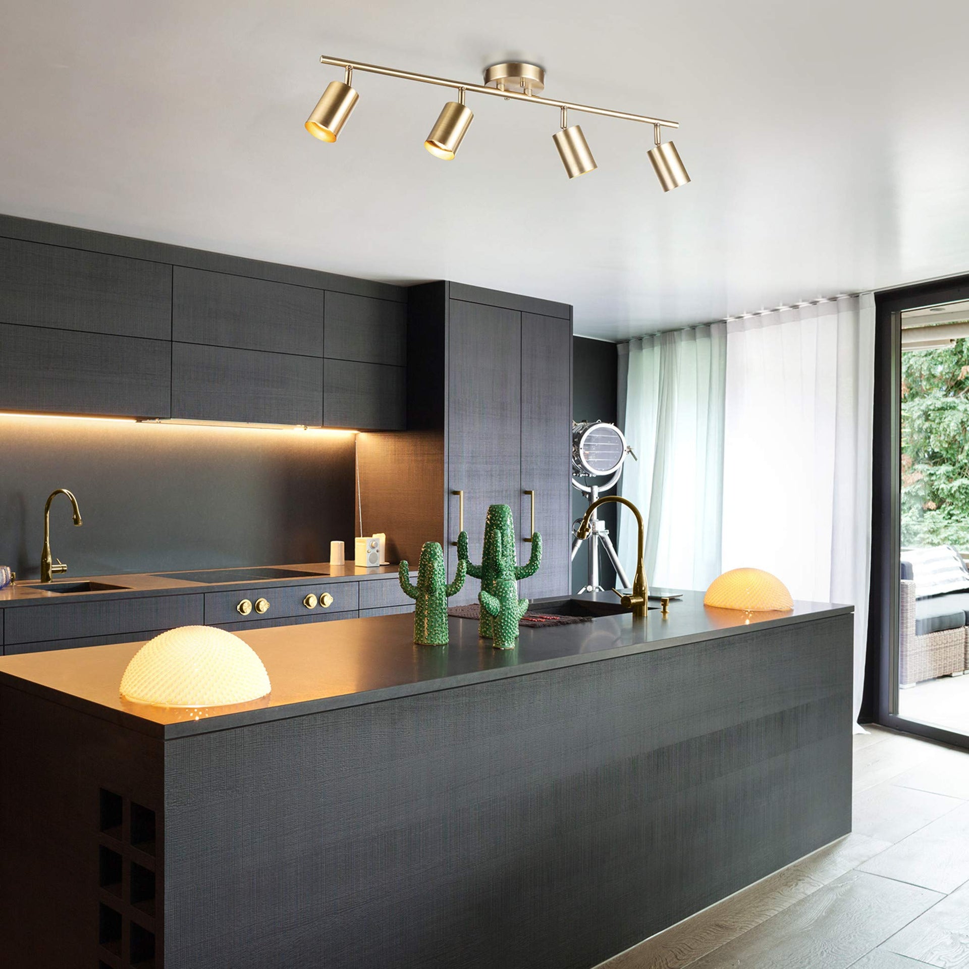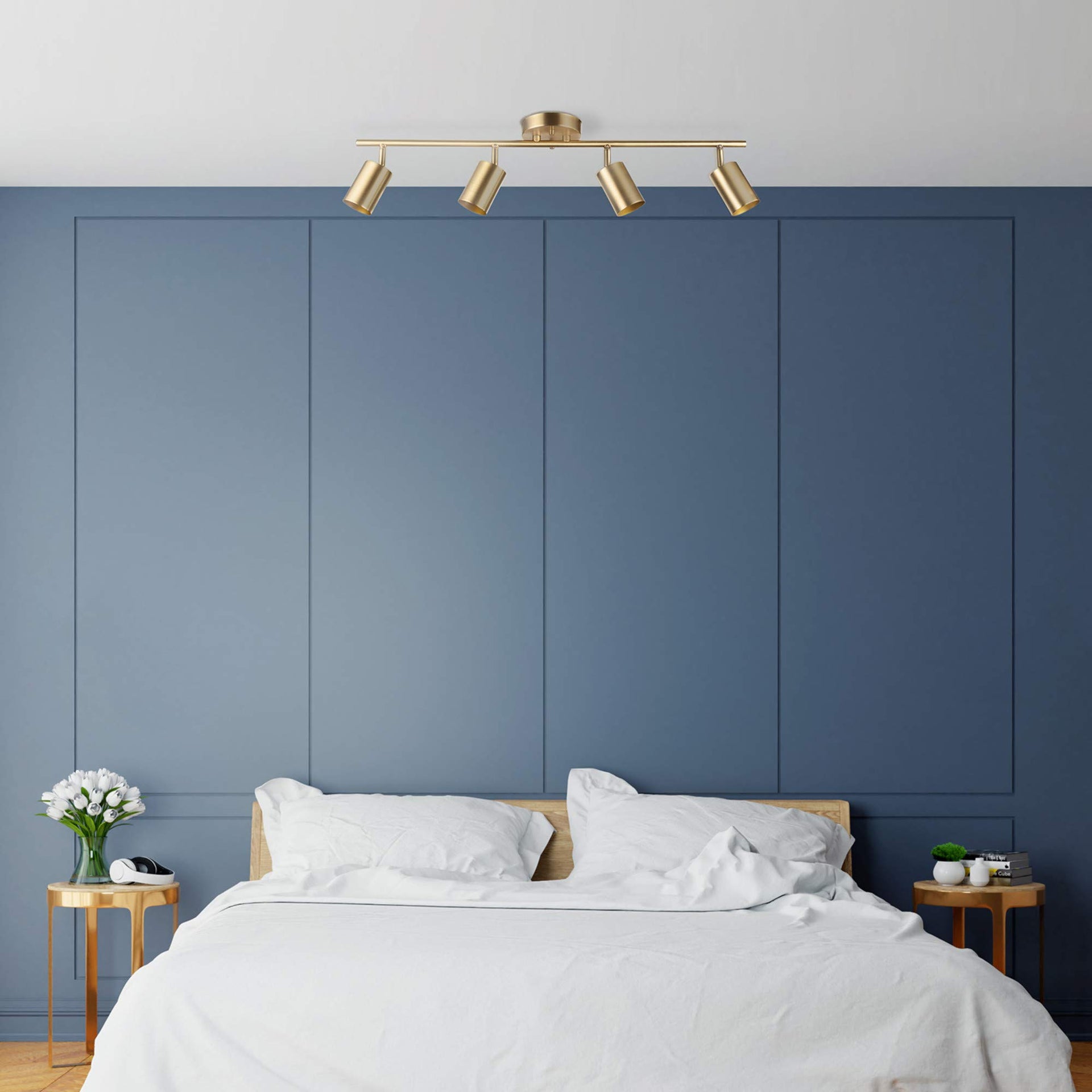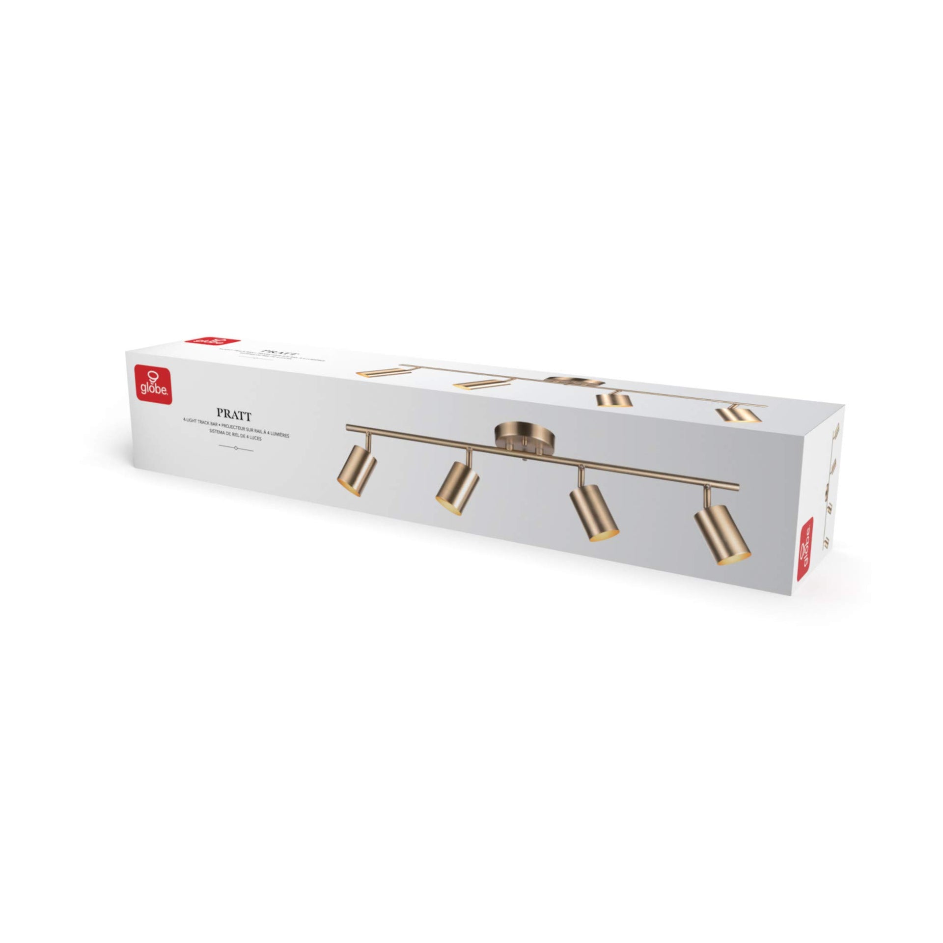 Details: The Pratt Collection by Globe Electric offers a variety of styles that keep elegance in mind. With four cylindrical track heads that protrude from a slender track bar which sits on the ceiling with a matte brass canopy, the Pratt 4-Light Track Light becomes the perfect way to illuminate your home. The matte brass color accents any decor while the slim, streamlined profile is great for placement - perfect for adding a little glam to your bedroom, living room, kitchen, hallway, or den.