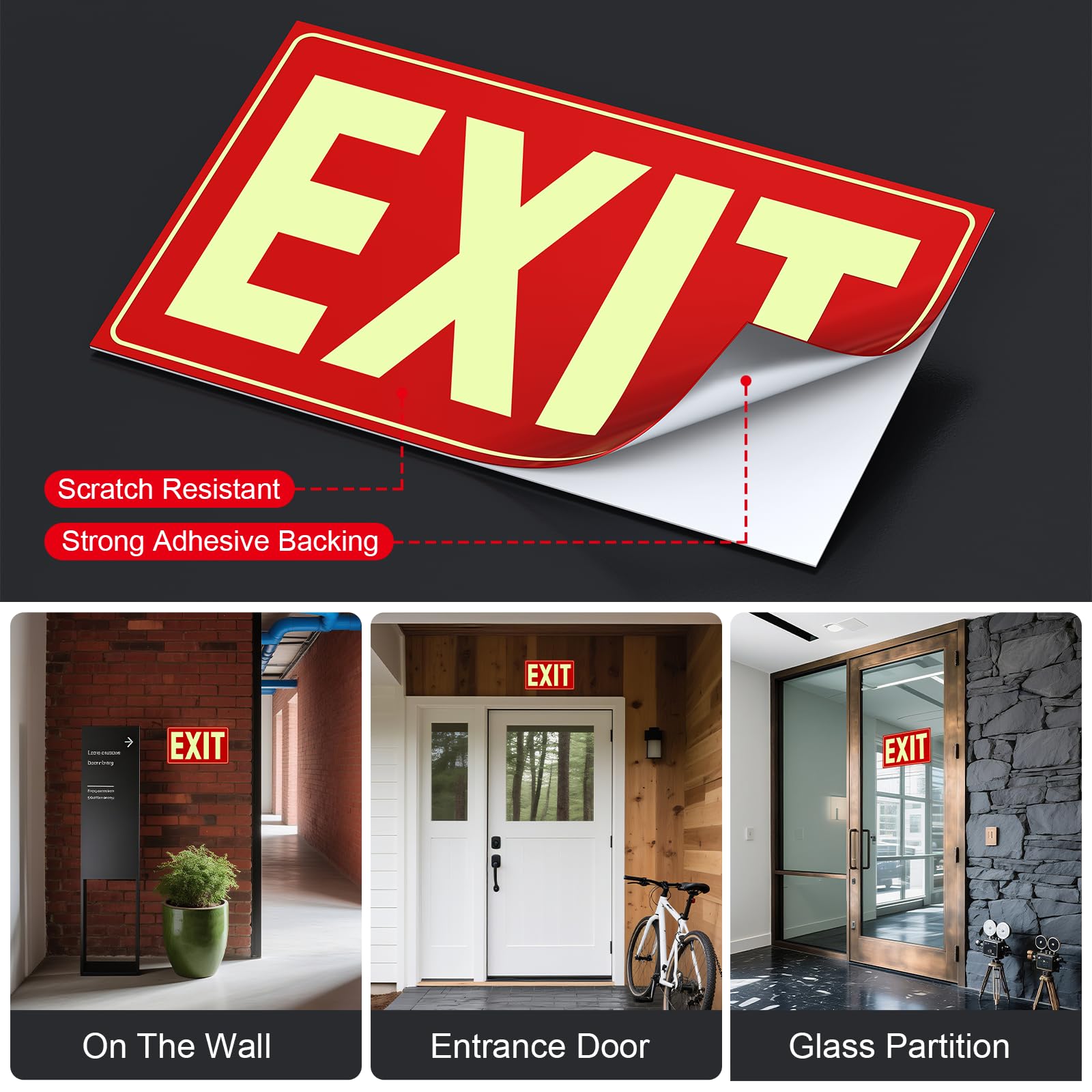 - 【Power-Free, Maintenance-Free】 This exit sign sticker slashes costs by 90% vs. wired signs—no electrical bills, battery replacements, or fire hazards. Maintenance-free design ensures lifetime safety with no upkeep, offering a budget-friendly safety solution for any facility.