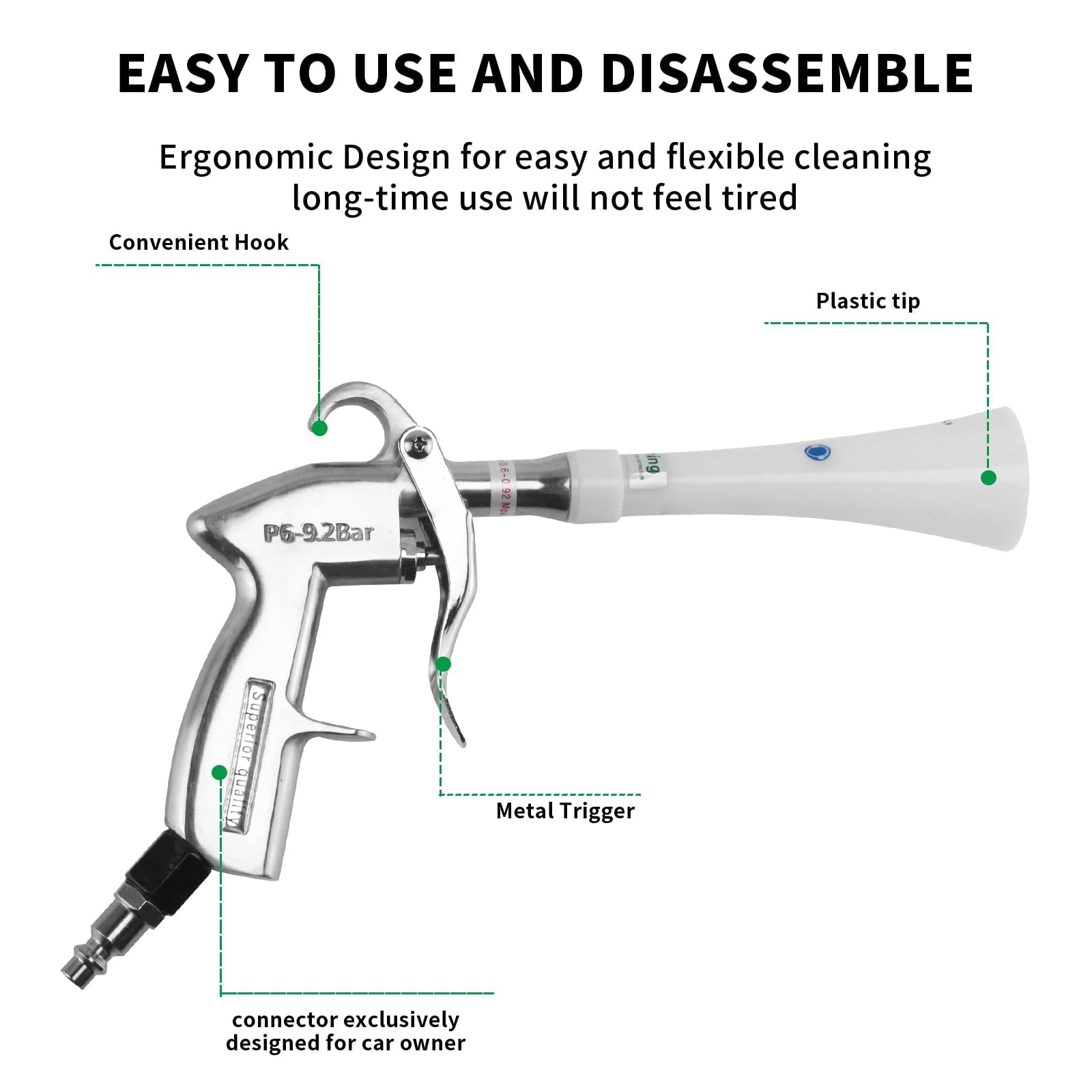 - Save Your Time: High pressure car cleaning gun provides superior airflow and can clean and dry surfaces in a matter of seconds, greatly improving the efficiency of internal cleaning.