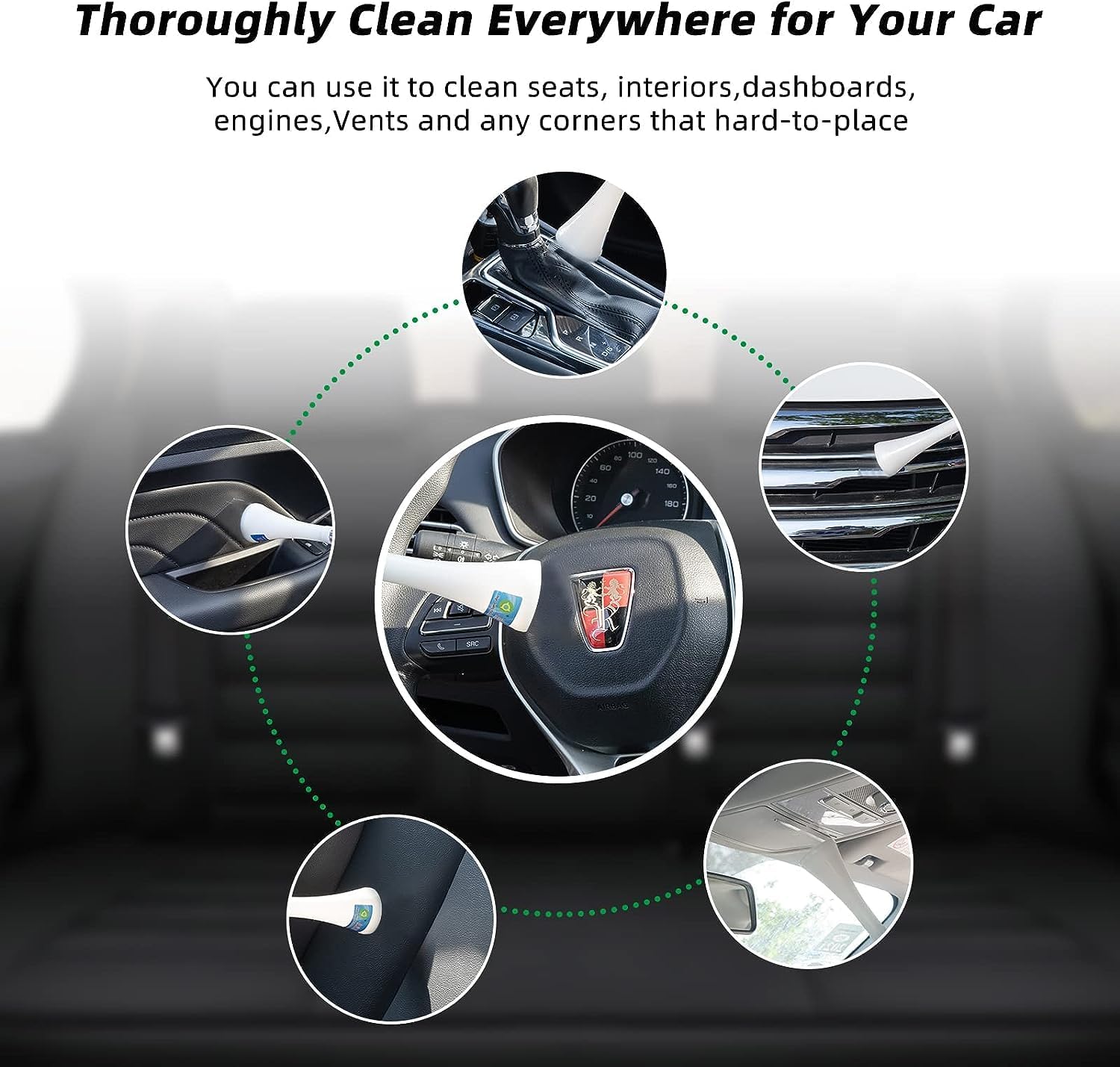 - Versatile Air Blow Gun: Using biological lipid-lowering and aerodynamic principles to clean cars. It mixes air and lipids together, wipes away stains inside the car, blows away dust under high pressure, and deeply clean your car. This product is used for cleaning the interior of cars and can effectively clean car stains/dirt.