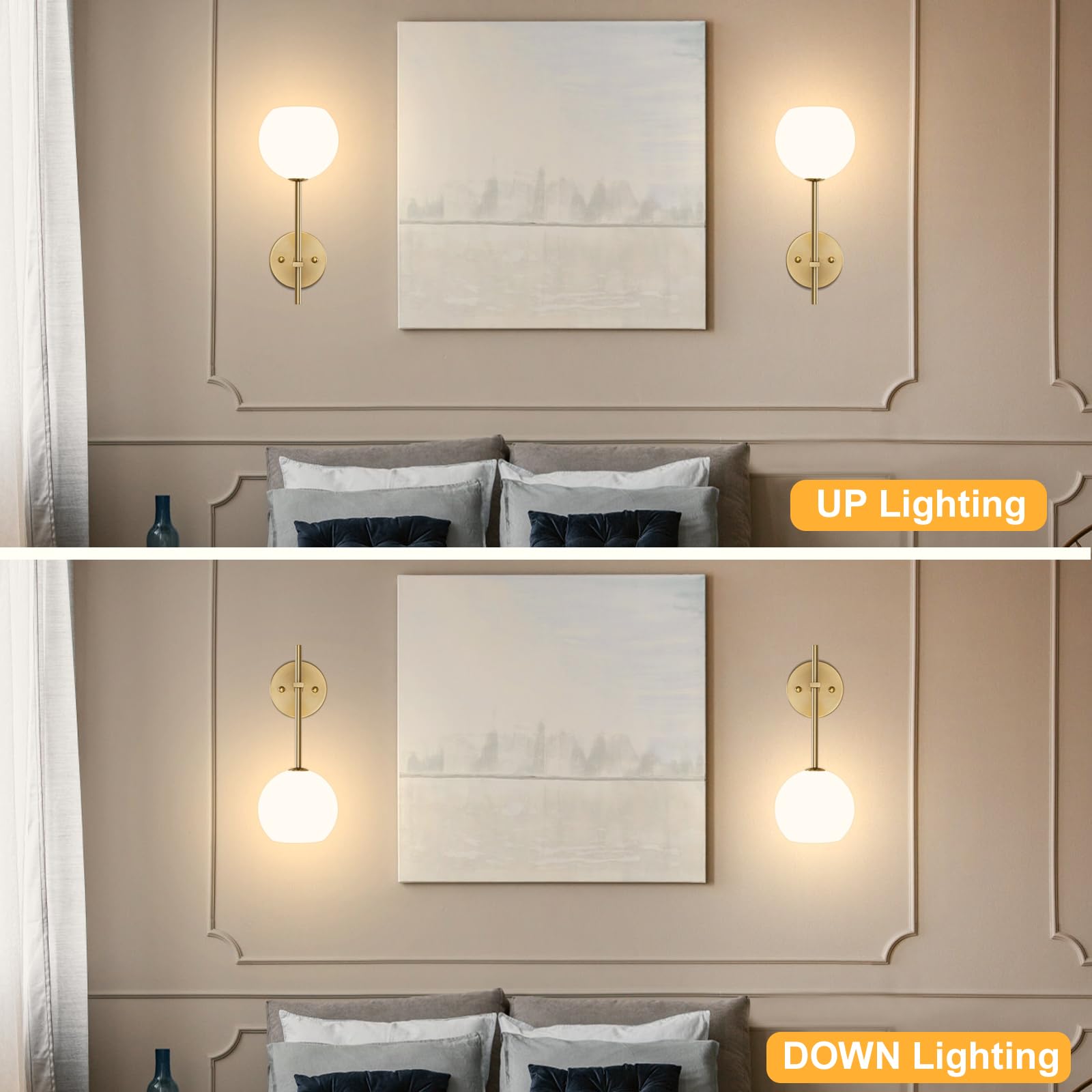 - Battery Wall Sconce: Milky white frosted glass lampshade cut design creates bright and soft lighting atmosphere, Perfect for the whole family. It is also a great choice for home decor