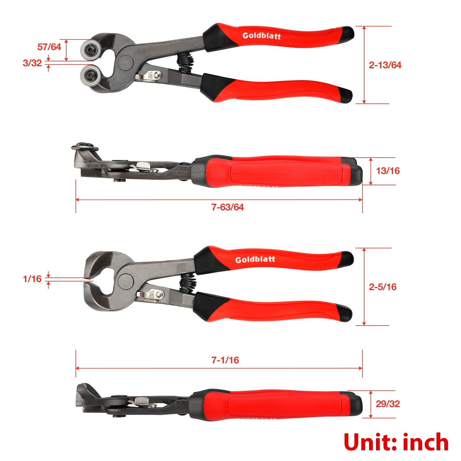- Goldblatt G2007 glass tile nippers are the perfect tool to quickly and easily cut precise shapes. Trim glass tile to fit around pipes, cabinets, and walls. Perfectly used for cutting tiles, mosaic, stained glass, mirror, stone, ice jade terrazzo, and agate; Goldblatt G2008 tile nippers can be used for softer materials like wall & floor ceramic, marble and stone. Works great on grinding all kinds of metal items, hardwood fine grinding, grinding sawtooth