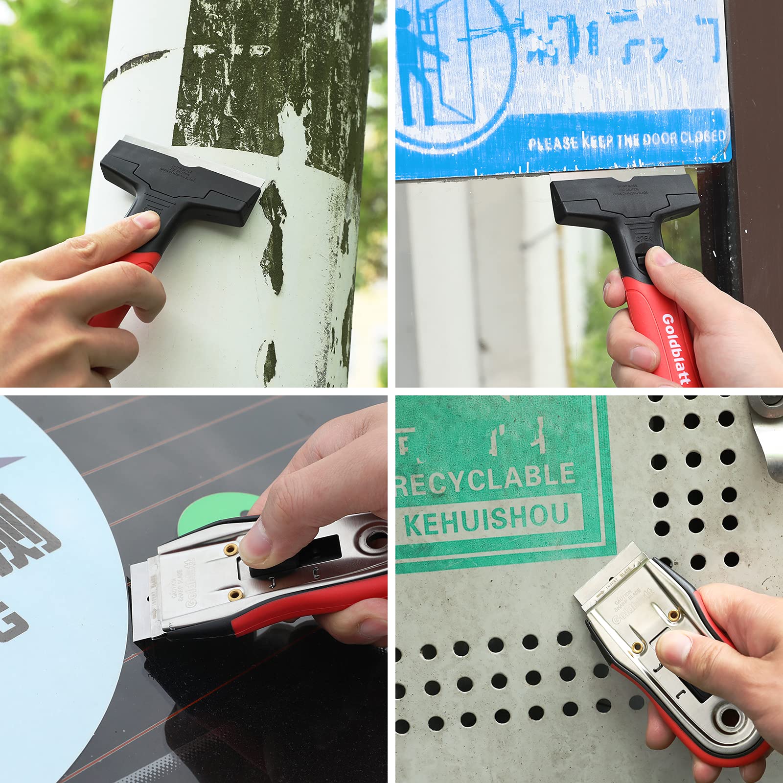 - Easy Assembly: Unlike other scrapers that use knob to assemble blades, Goldblatt scraper set just need to pull and push the switch to replace the blades, No worry about losing knob or bolt. Slot design will securely fix the blades in place for safety use
