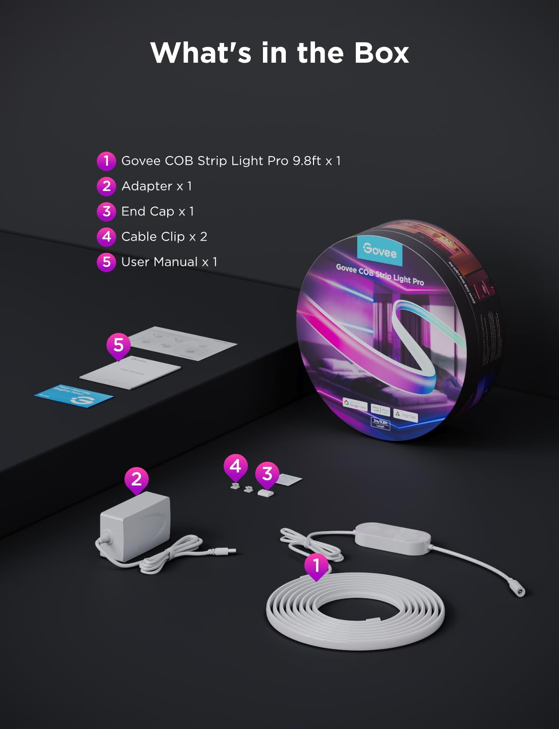 - Spotless and Diffused: Govee COB LED Strip Lights encased in a soft silicone sleeve for continuous and spotless lighting. Suitable for surface mounting, elevating your lighting designs and Valentine's Day decor.