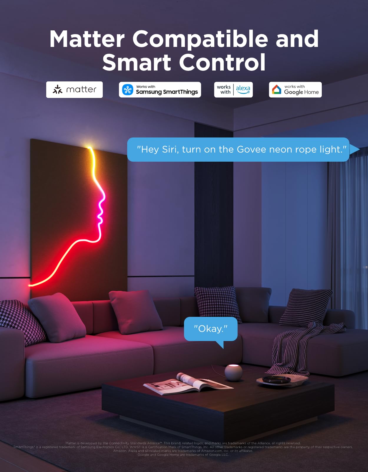 Govee 9.8ft RGBIC LED Smart Neon Rope Light, Works with Matter, Alexa & Google, Custom DIY Neon Strip for Bedroom & Wall Decor, White