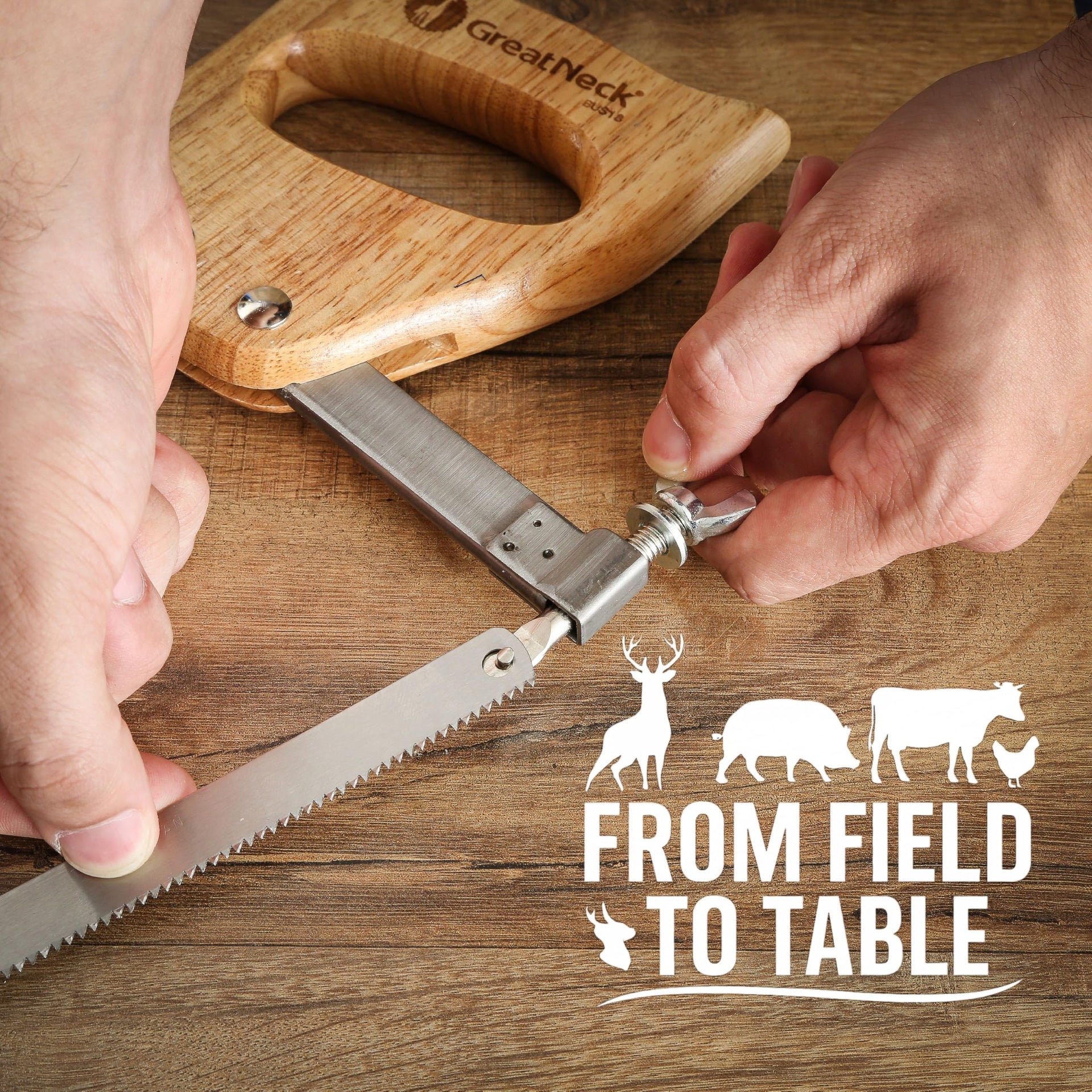 Details: The GreatNeck BUB18 18 Inch deer bone saw blade (10 TPI) delivers strength, control, and precision for hunters, butchers, and home meat processors. Designed to fit the GreatNeck BUS18 hunting bone saw and most standard butcher saw frames, this replacement deer meat processing equipment blade is built from solid steel for long-lasting durability. Meat bone saw 10 teeth per inch (TPI) design provides smooth, efficient cuts through meat and bone, reducing resistance while maintaining clean results. The precision-sharpened teeth stay sharp through repeated use, making it ideal butcher bone saw for processing game or portioning meat. Each 18 inch deer saw blade includes a protective sheath to ensure safe storage and transport between uses. Whether you’re trimming ribs, cutting joints, or preparing large cuts of meat, this butcher saw for meat bone cutting replacement blade offers the performance and reliability needed for professional or home meat processing.