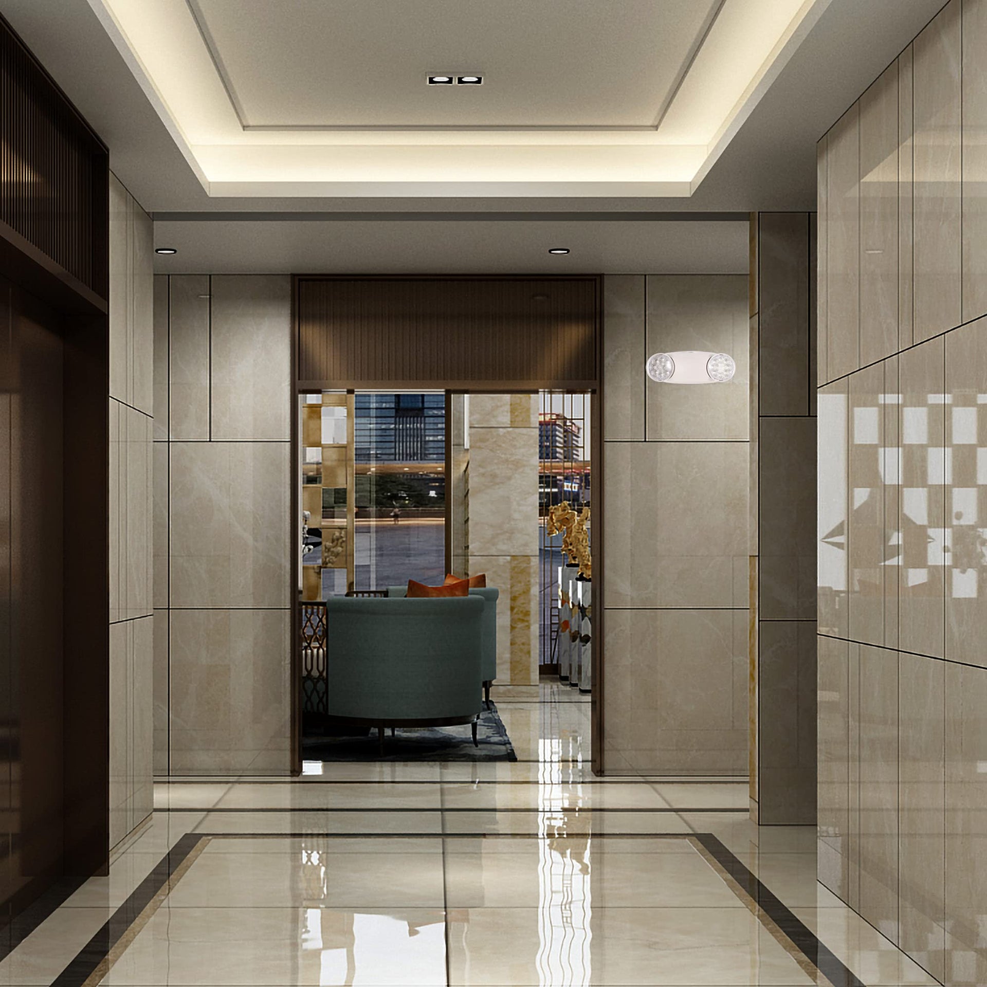 GRUENLICH LED Emergency Light, Exit Lighting Fixtures with 2 LED Bug Eye Heads and Back Up Batteries, UL 924 Qualified, 120/277 Voltage, 1-Pack