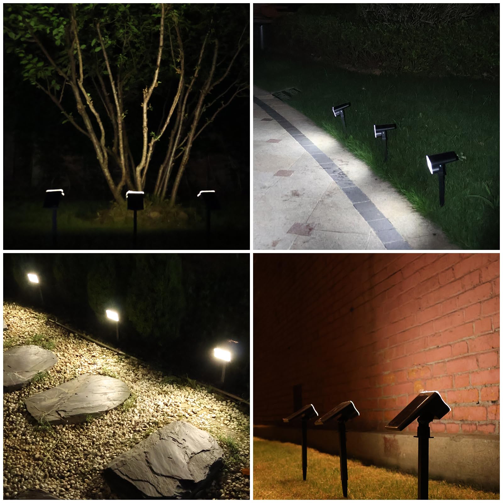 - HGGH Solar Spotlights Outdoor Waterproof: The outdoor lights feature an IP67 waterproof design, ABS+PC aging-resistant housing, and can operate at temps from -4°F to 140°F. They offer 3 in 1 protection against water, snow, and high heat, ensuring normal use in harsh environments. At the same time, these solar powered outdoor lights built-in triple circuit protection (overcharge / discharge / short circuit) keeps you safe.