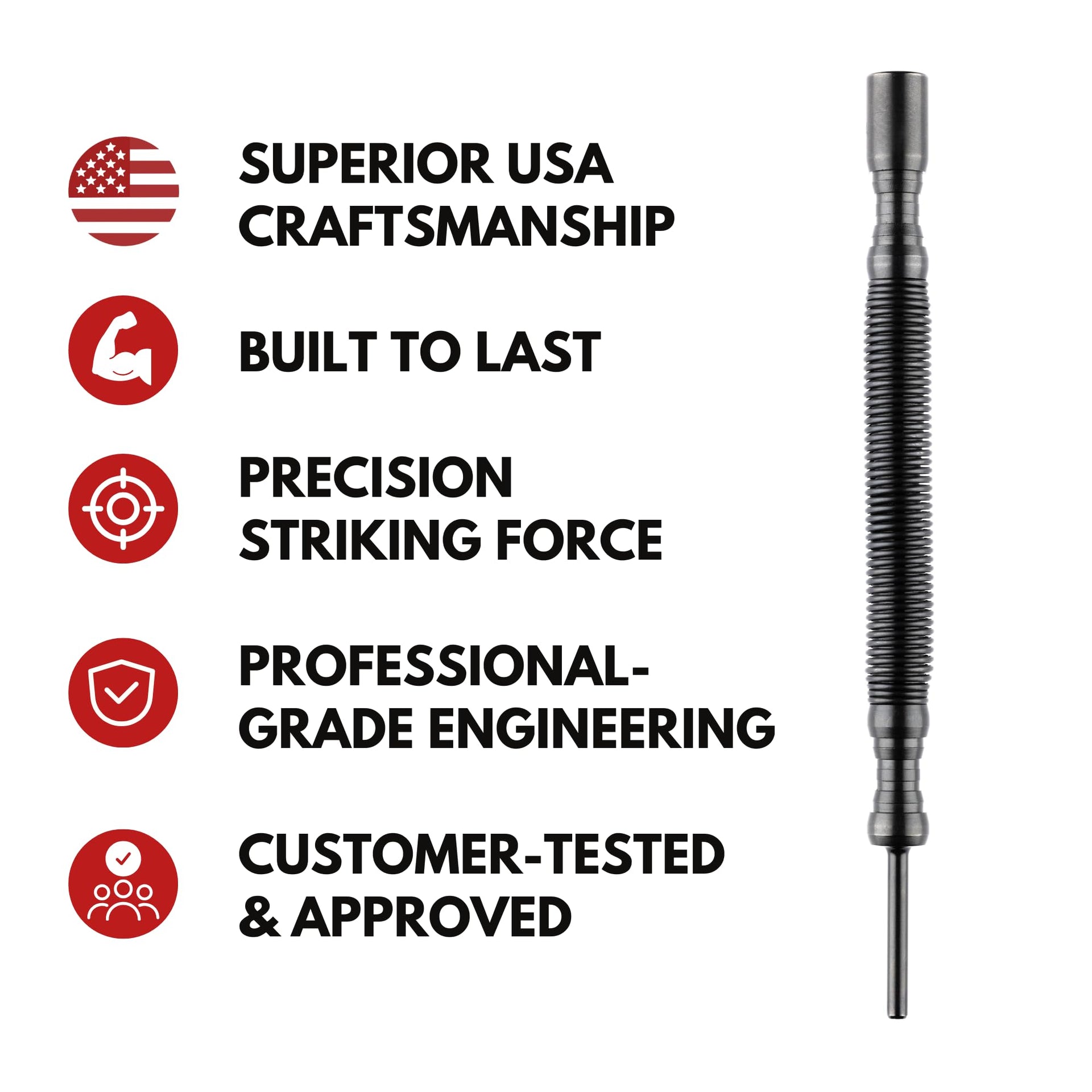 - ๐ฃ๐ฅ๐๐๐๐ฆ๐๐ข๐ก ๐๐ฃ๐ฃ๐๐๐๐๐ง๐๐ข๐ก & ๐๐๐ ๐๐๐-๐๐ฅ๐๐ ๐ฅ๐๐ ๐ข๐ฉ๐๐ โ The cupped face design ensures accurate pin alignment, reducing movement and preventing damage to door trim and surrounding surfaces. The compact spring-loaded hammer fits into tight spaces where traditional hammers can't.