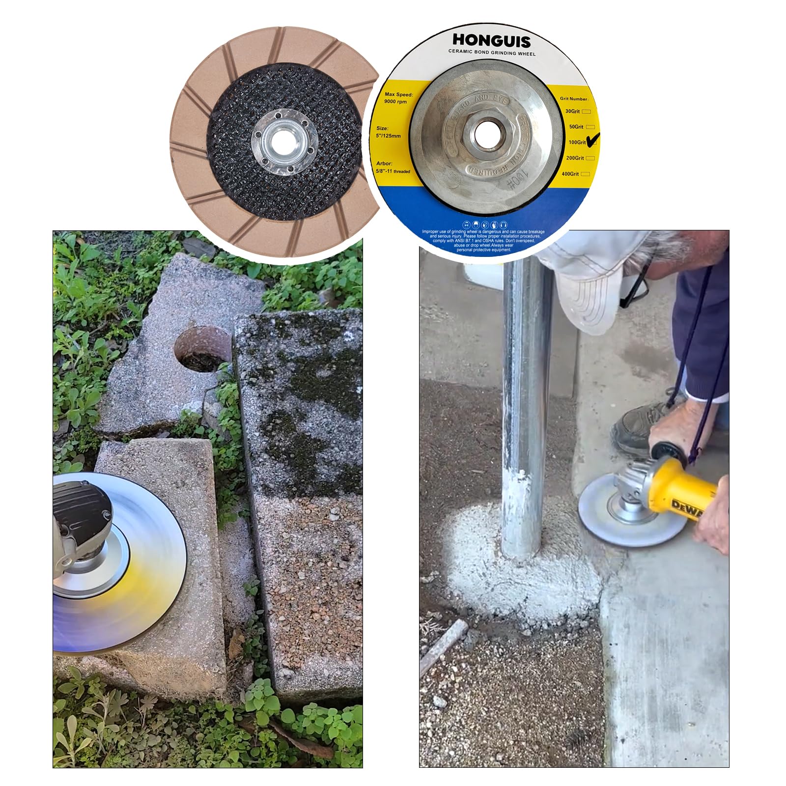 - Concrete Transitional Grinding Wheel:HONGUIS ceramic bond transitional diamond cup wheel is good choice for polishing concrete and smoothing stain,gouging and scratch patterns left by metal grinding disc.It will give better results on concrete