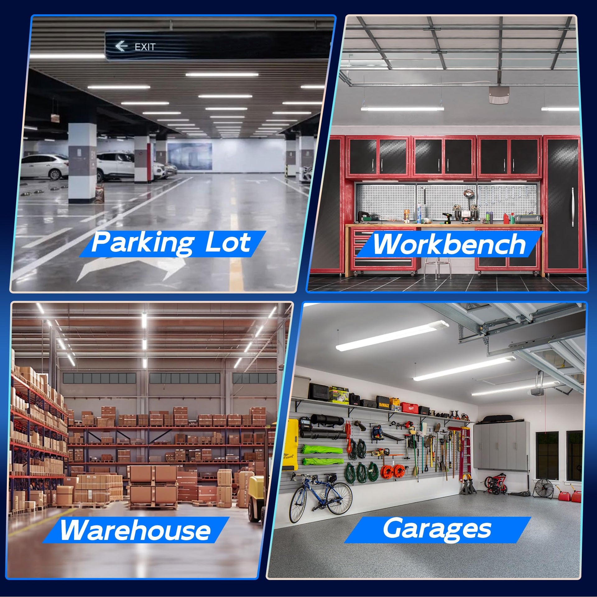 - ✅ Linkable - 4ft linkable led shop light use plug connection to connect up to 6 pcs together in your garages, workshops, workbench areas, storage areas, warehouses, basements, equipment rooms, etc