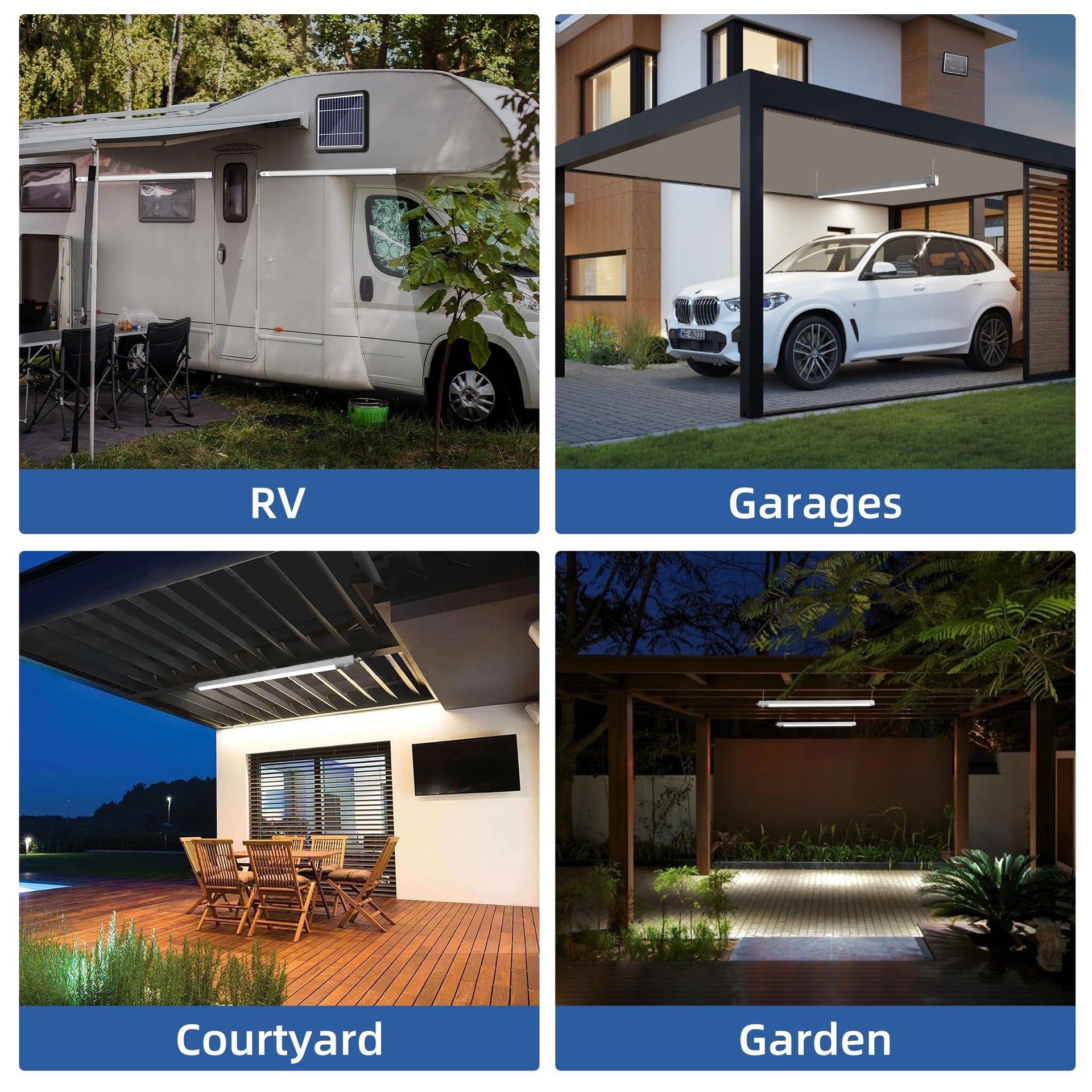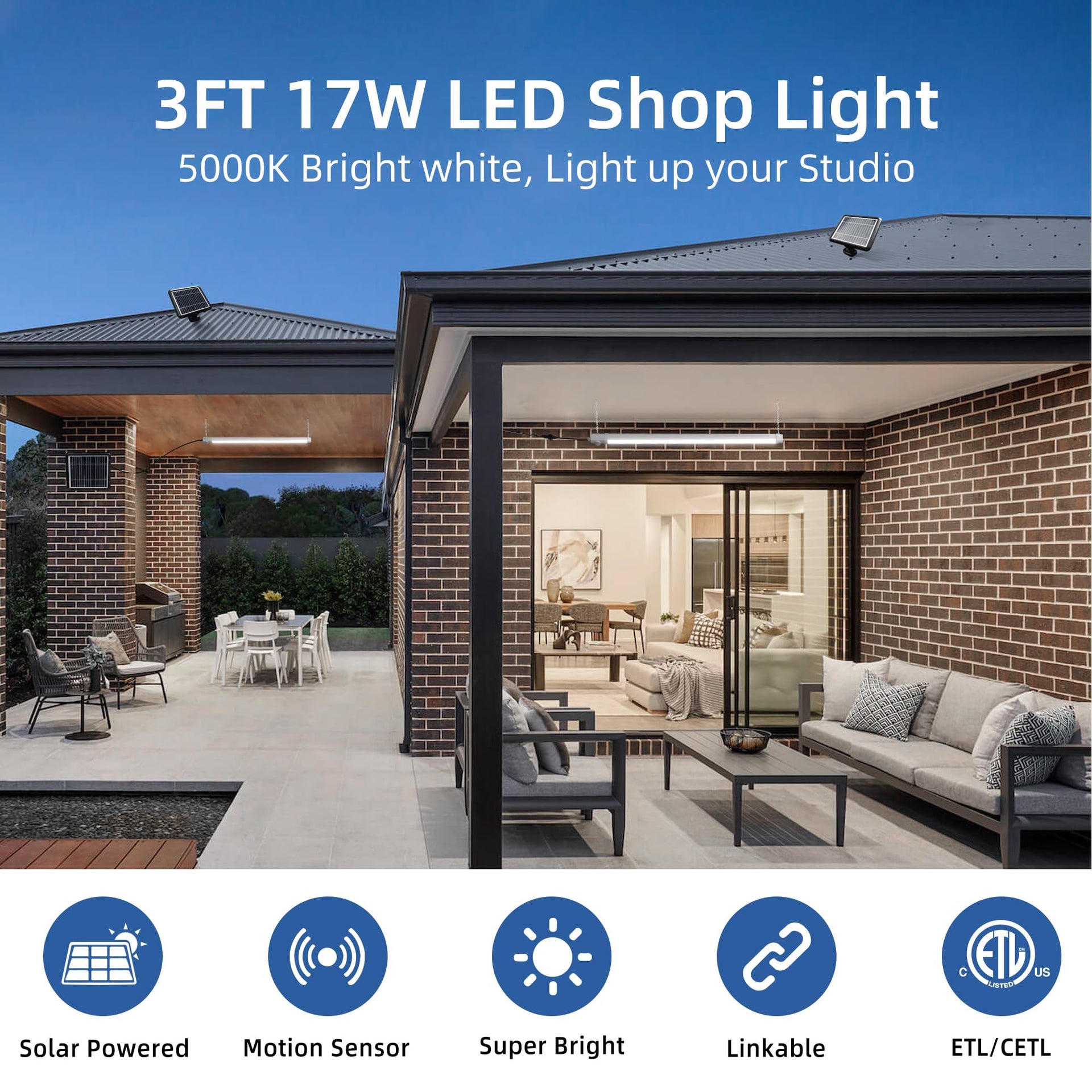 Hykolity 3FT 17W Solar LED Shop Light with Motion Sensor, IP65 Waterproof, 100W Equivalent, Outdoor Garage, Barn, Home – 2 Pack