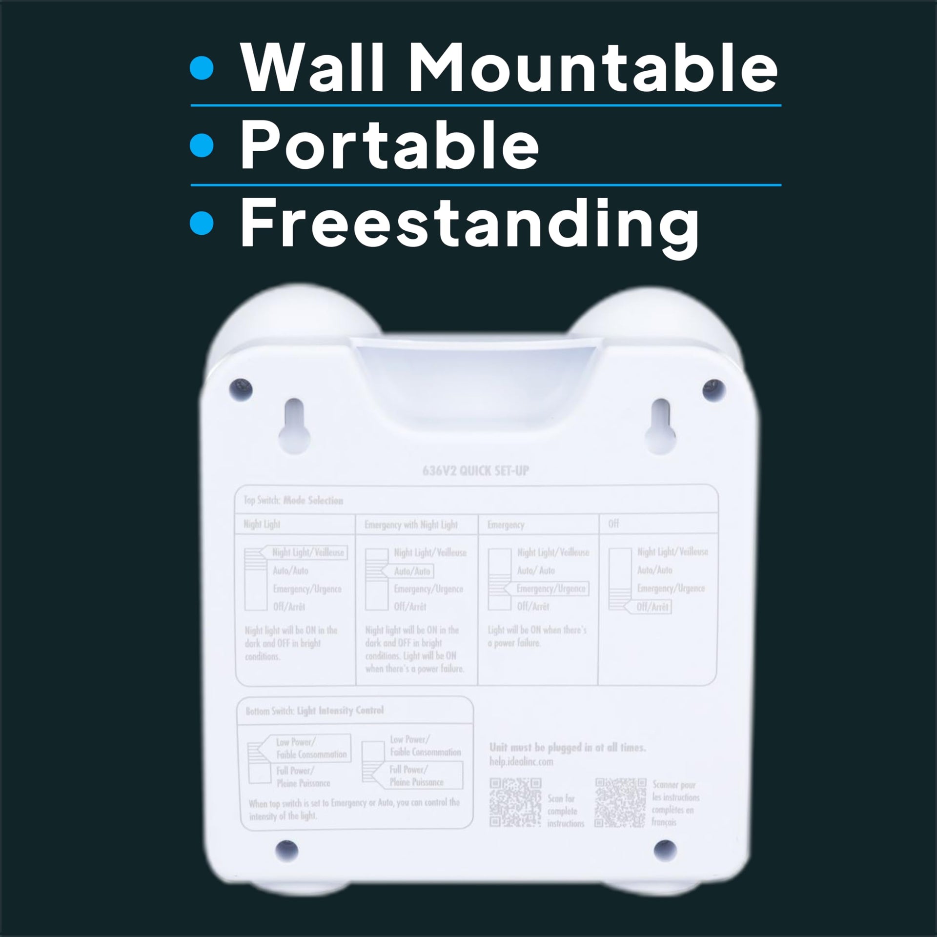 Better and brighter, the 636V2 brings you the best in Ideal Security’s automatic, long-lasting LED emergency lights for power outages. Featuring three modes, you can customize your use of the 636V2 to fit the bill in any darkened situation. Whether you’re in need of a standard emergency light with the “Emergency” mode, a gentle accent light with our “Night Light” mode, or an “Auto” mode for the best of both worlds, you’ll find yourself in good hands with the 636V2’s optimized and improved performance. Between the efficient low-power setting which offers 80 lumens and 48 hours of light or the intense high-power setting which emits 140 lumens and 21.5 hours of light, you can adjust the brightness to suit your needs. The 636V2 can be fully charged in 24 hours. Where the 636V2 shines is in its capability to automatically brighten your space in your time of need. Once you plug in the 636V2 with its 10 ft. USB-C charging cable and set it to either the Auto or Emergency mode, as soon as a power outage occurs the 636V2 will detect the loss of power and instantly illuminate your surroundings. Its sleek casing comes with an integrated handle, letting you carry the lightweight emergency light to shine your path. The integrated keyholes allow you to mount the light on any wall. And if you’re torn between having a stationary or portable light, the casing’s stable stand lets you set the emergency light on any shelf, table, or flat surface. When unexpected power outages and electrical failures strike, you can trust in the 636V2 to be your beacon of light in the dark. This light has been designed as a residential product. It is not a CSA/UL certified emergency light that may be required in some environments. Check with your local work-safety associations if 636V2 is approved for your application.
