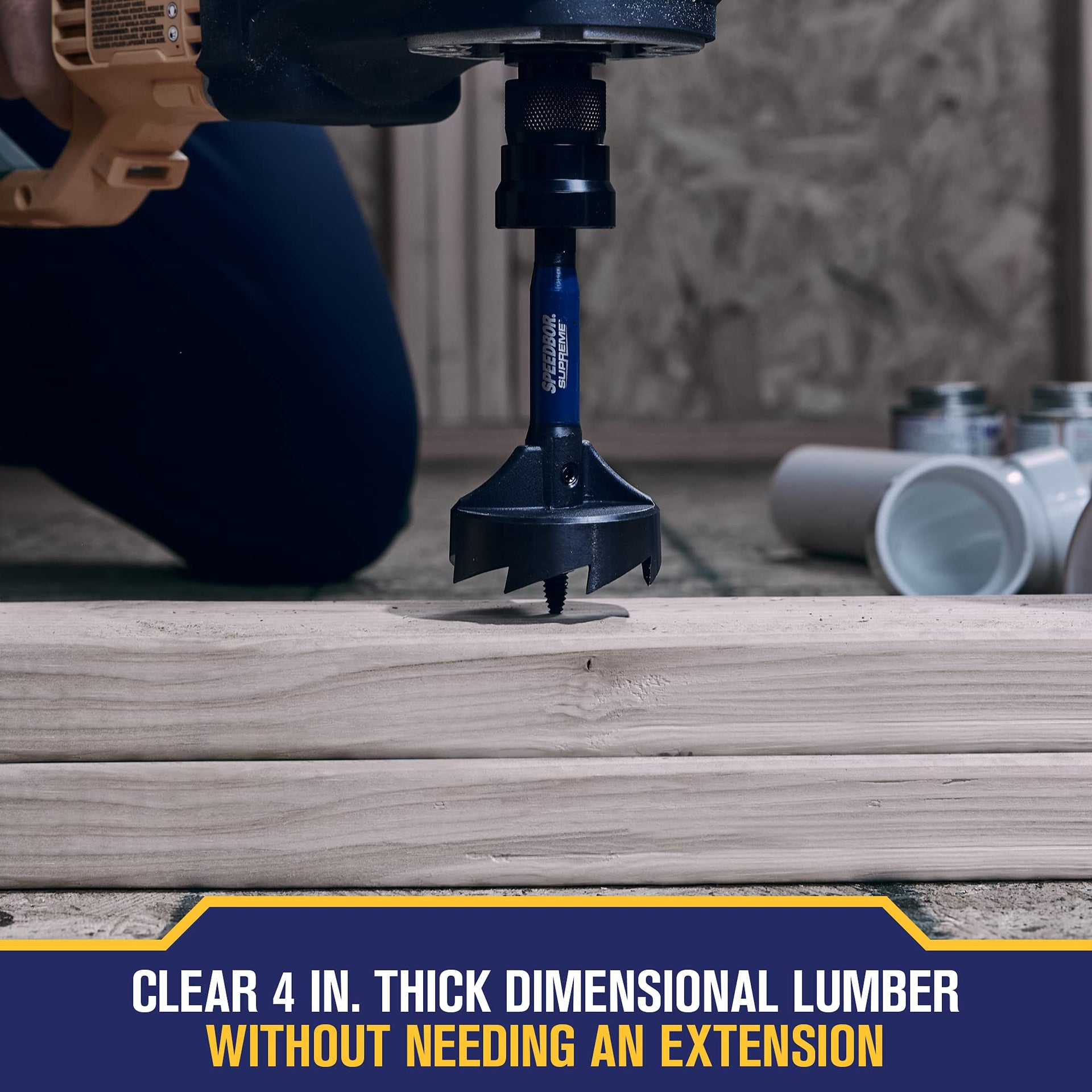 Details: Designed to deliver 3X longer life in challenging wood-drilling applications, REIGN SUPREME with the 2 in. SPEEDBOR SUPREME Self-Feed Bit, even when driving into nail-embedded wood. Make quick, clean holes with durable, bi-metal construction engineered to withstand repeated nail strikes. The extended shank bit clears 4 in. thick dimensional lumber without needing an extension, while the included replacement tip avoids work interruptions. REIGN SUPREME on the jobsite and tackle wood-drilling needs with ease.