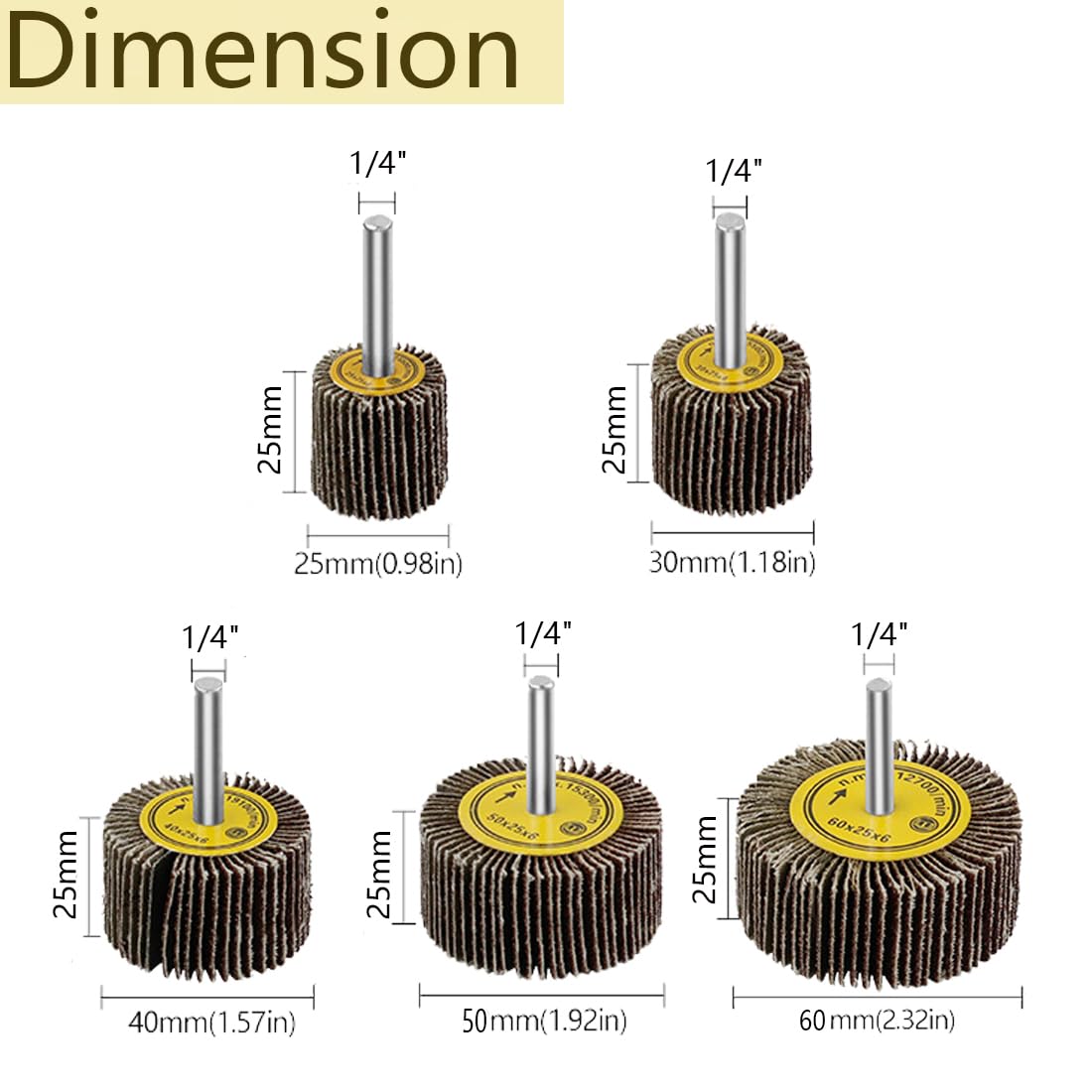 - 10 pieces flap sanding wheels includes 5 sizes: 25mm, 30mm, 40mm, 50mm, 60mm