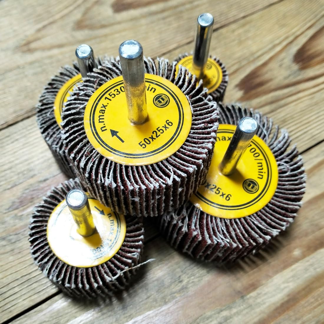 - Package contents: 10 pieces assorted sizes 1/4-inch shank flap sanding wheels