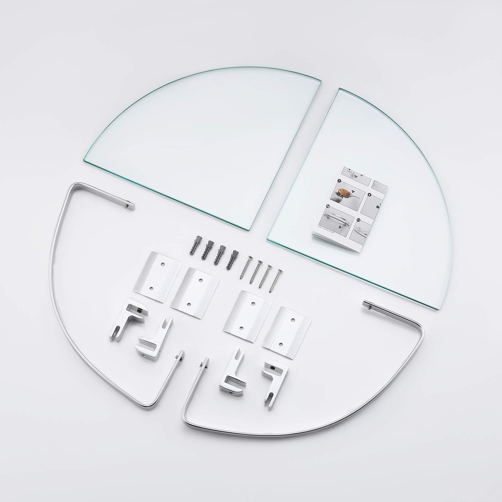 - All Hardware And Instructions Included. Set screws (for glass shelf), wall-mounting screws and instructions are all included, no need to purchase extra hardware.