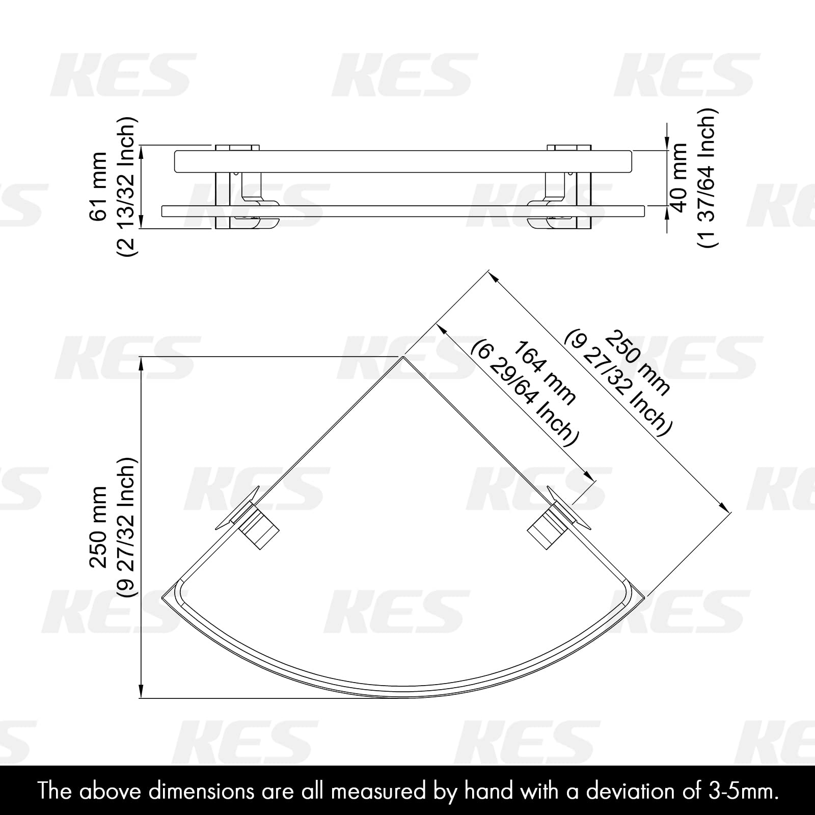 - Compact Size Huge Storage Space - Corner shower shelf depth 9.8-inch. You can find precise dimension from product pictures. Overall dimensions: 9.8 x 9.8 x 2.4 inches.