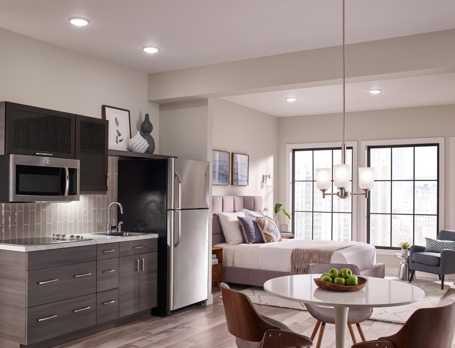 - A pattern of downlights around the perimeter of any room offers a complete corner to corner lighting effect for full room coverage.