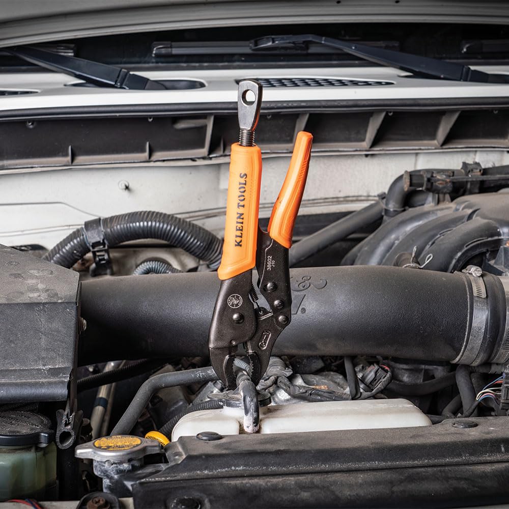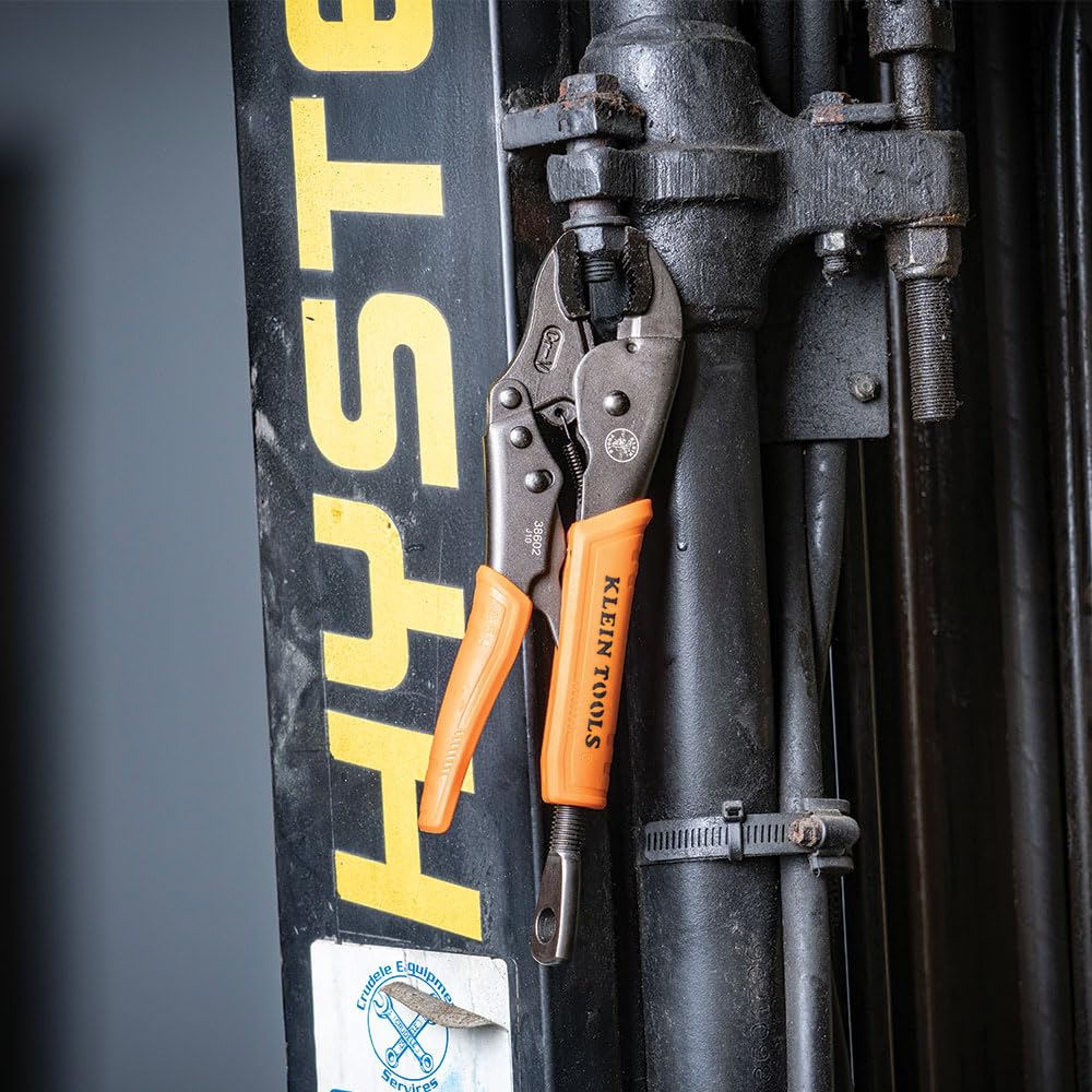 Klein Tools 38660 Locking Pliers Set, 7-Inch and 10-Inch Curved Jaw Pliers, Quick Release Handles, High Torque and Gripping Power, 2-Piece