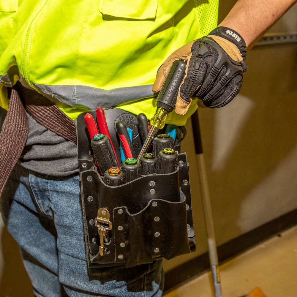 Details: The Klein Tools Magnetic Nut Driver Set features 7 pieces of the most popular nut driver sizes and is perfect for a wide variety of applications. These nut drivers have magnetic tips and full hollow shafts that slide easily over long bolts or studs. Klein's patented Tip-Ident helps quickly identify the nut driver and size in a tool bag or pouch. For more than 160 years, Klein Tools has manufactured premium-quality, professional-grade hand tools that deliver the performance, durability and precision needed to get the job done right. Our family of engineers, workers and craftsman continue to put six generations of expertise into every tool we create by using only the highest quality materials, superior workmanship, and keeping manufacturing as close to home as we can. Klein isn't just the name of our company, it's also our family name. And since we're an American company that's family-owned and family-run, you know you can count on us to be here tomorrow. Klein Tools doesn't just make great products, we make great products that stand up to the demands of the professionals who use them every day ... Since 1857.