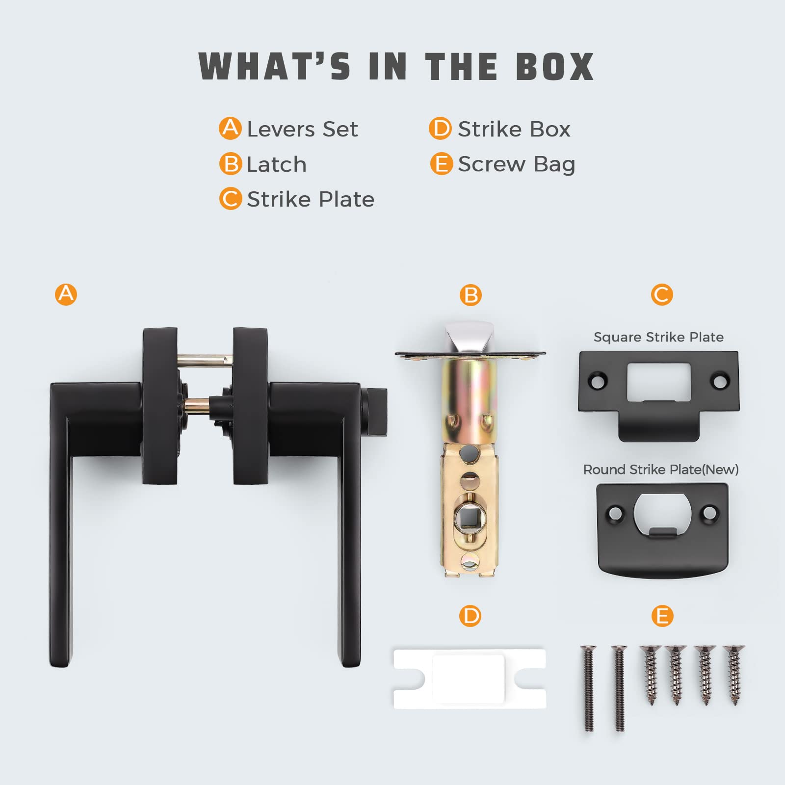 - ONE SIZE FITS MOST: This black door lever fits 1-3/8" to 1-3/4" doors; Reversible for both left handed and right handed doors. (Notice: The latch plate is unremovable.)