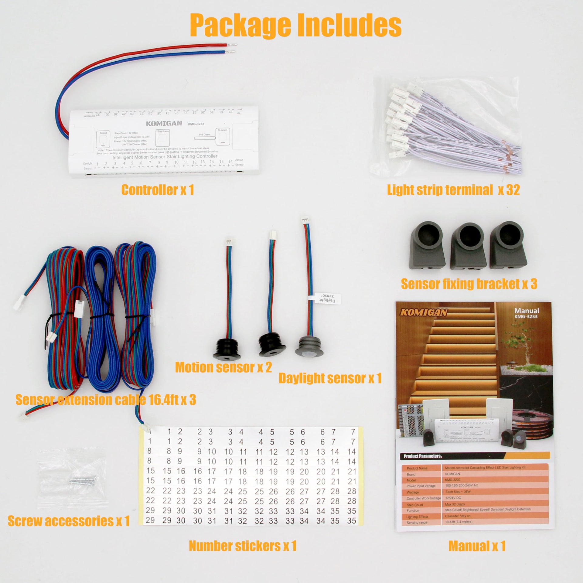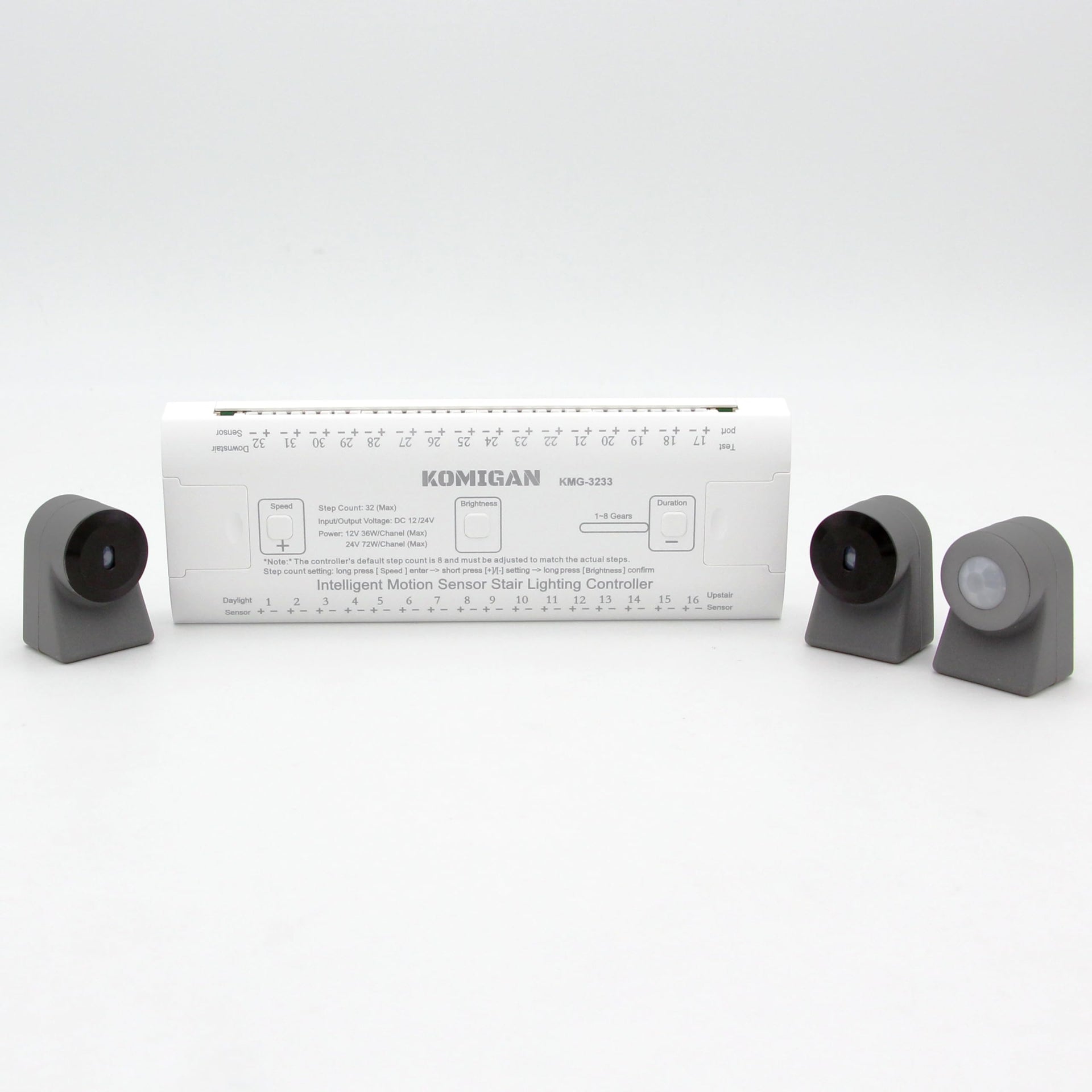 Details: KOMIGAN KMG-3233 Motion-Activated Cascading effect Controller, Support up to 32 steps for Indoor LED Stair Lights