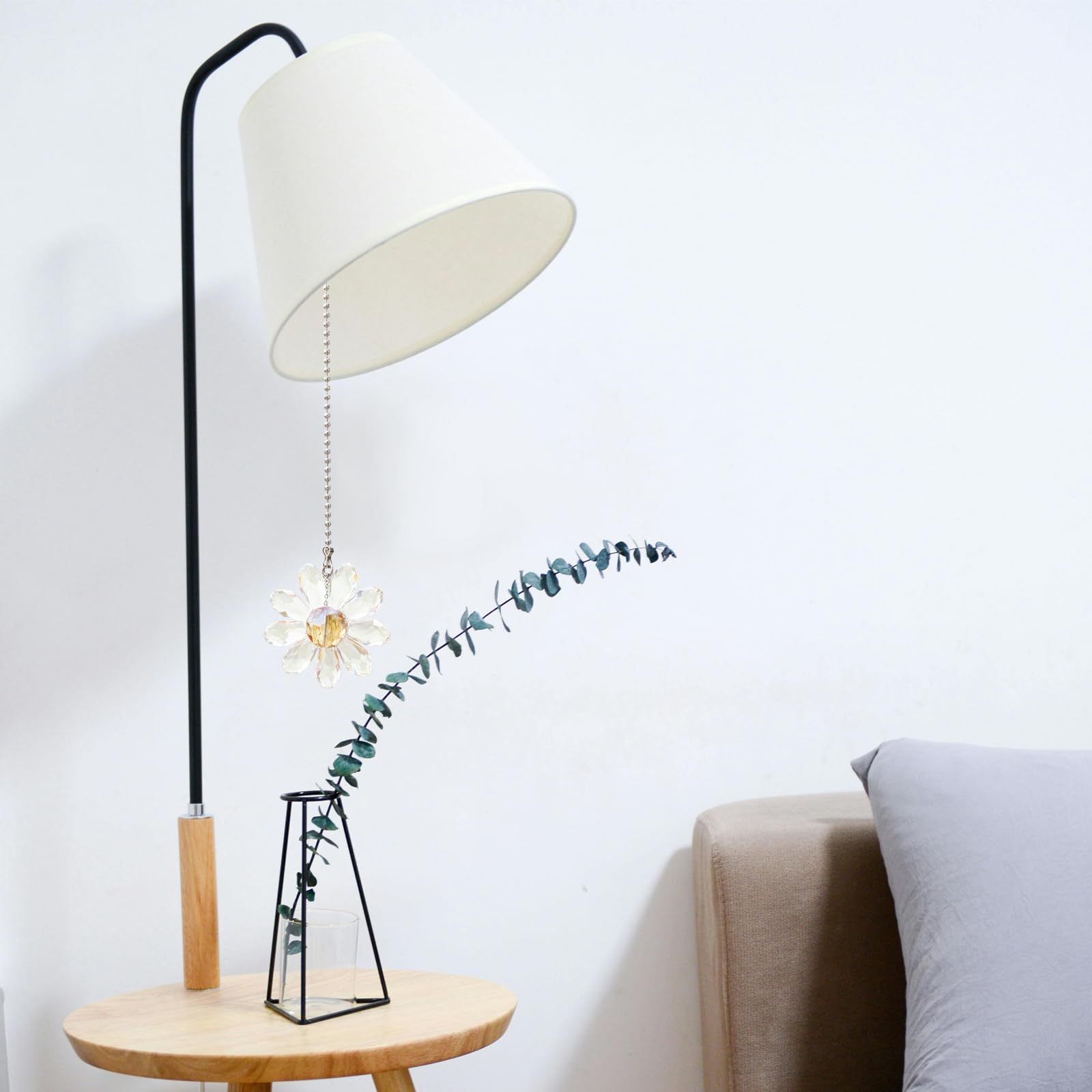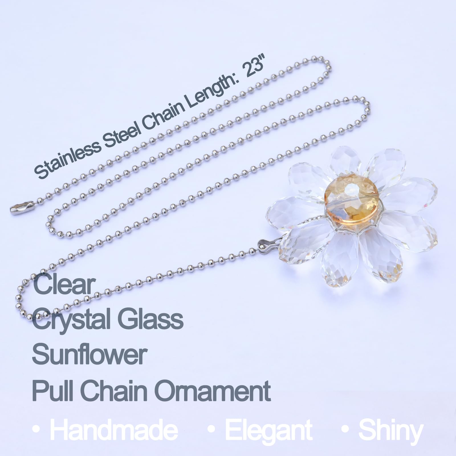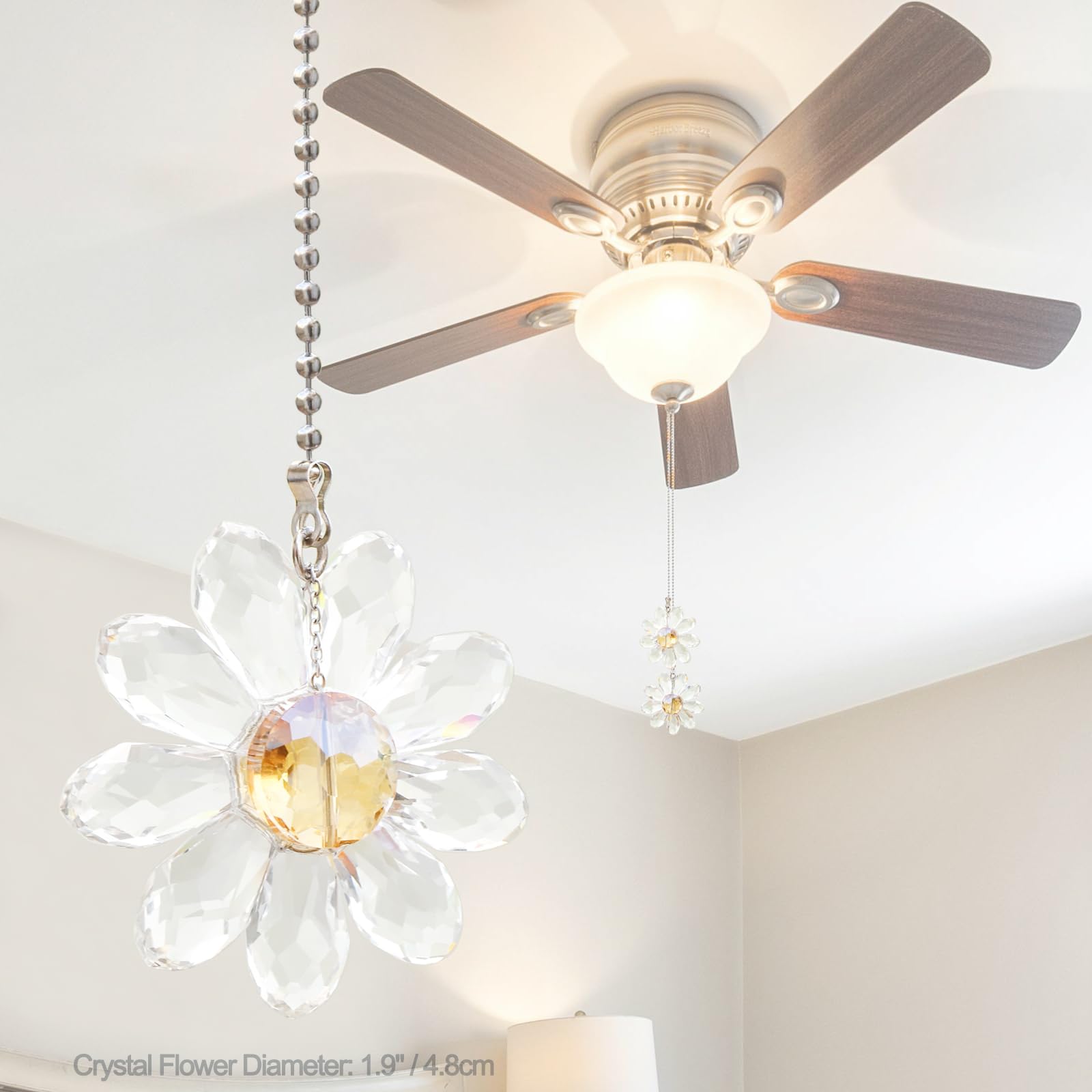 LEFERS Ceiling Fan Pull Chain, 2 Pieces 1.8" Crystal Glass Flower Pendants with 24" Ceiling Fan Chain Extender and Connector (Clear)