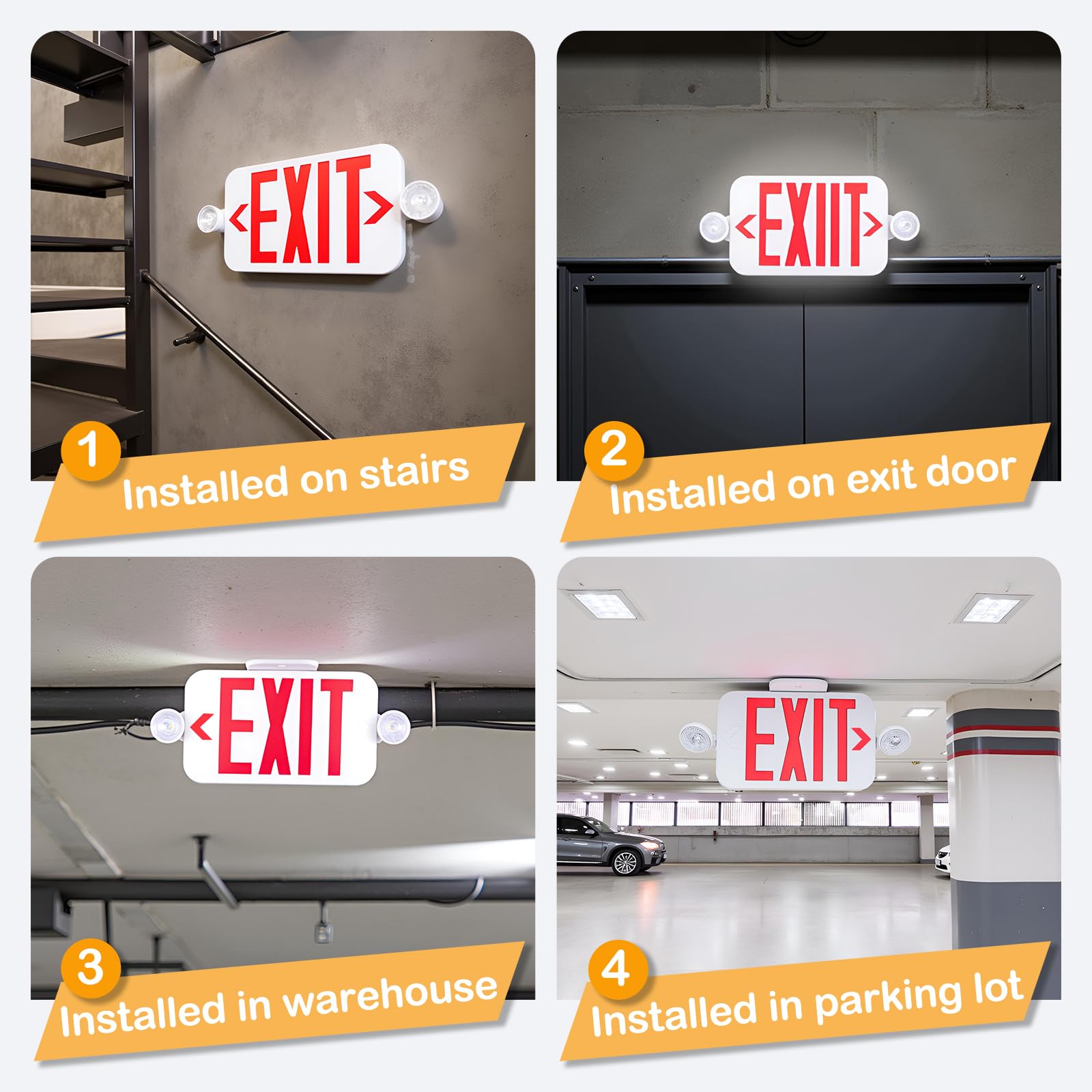 LIT-PaTH LED Exit Sign with 2 Adjustable Heads, Double Face, Backup Battery, UL 924 & CEC, 120-277V Emergency Lighting, 1-Pack