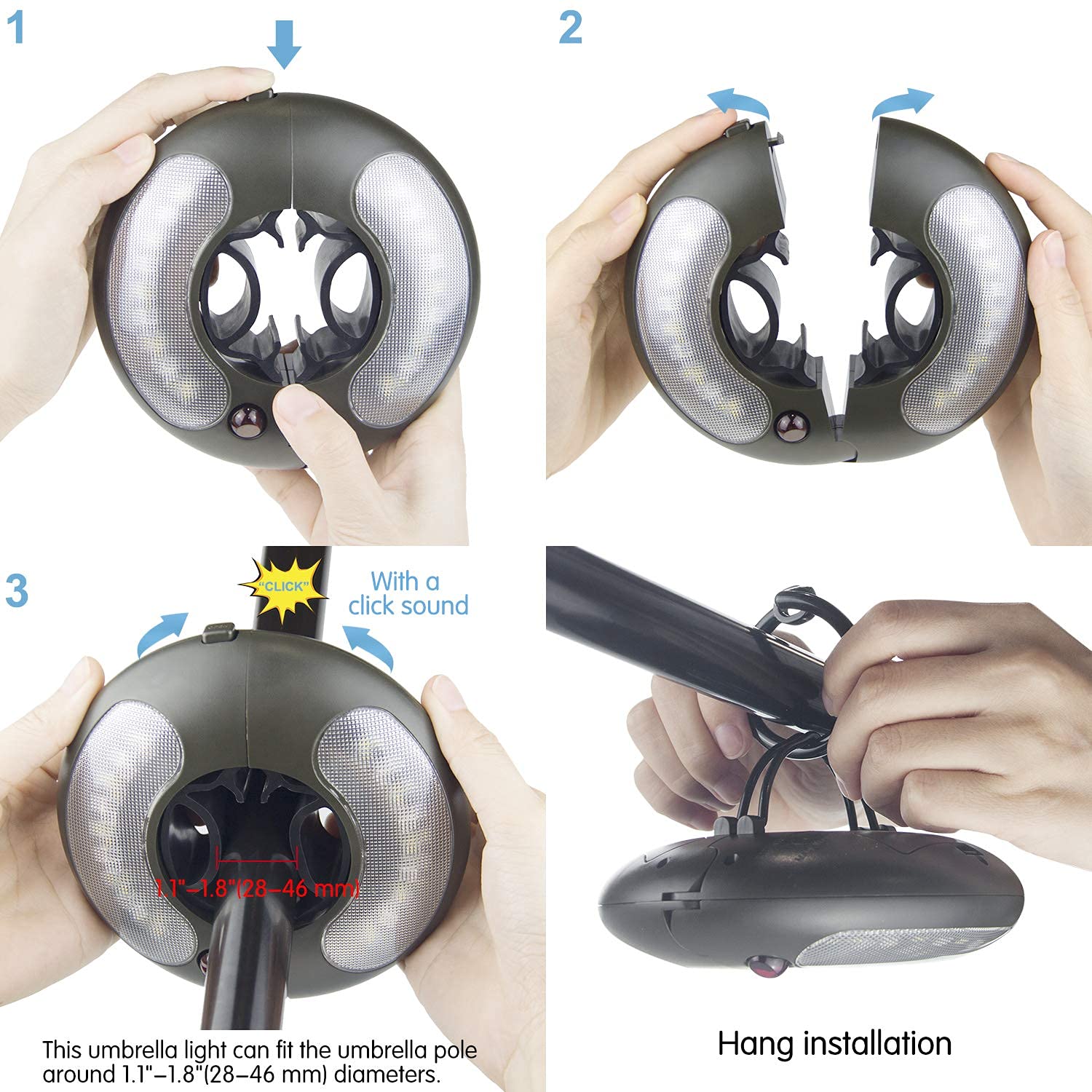 - Easy to Install and Multiple Functions: Easy to clamp around the pole(1.1-1.8" in diameter) or hanging anywhere using the hooks(included). Perfect for indoor, garden, under umbrella, camping tent, BBQ with your family and friends.